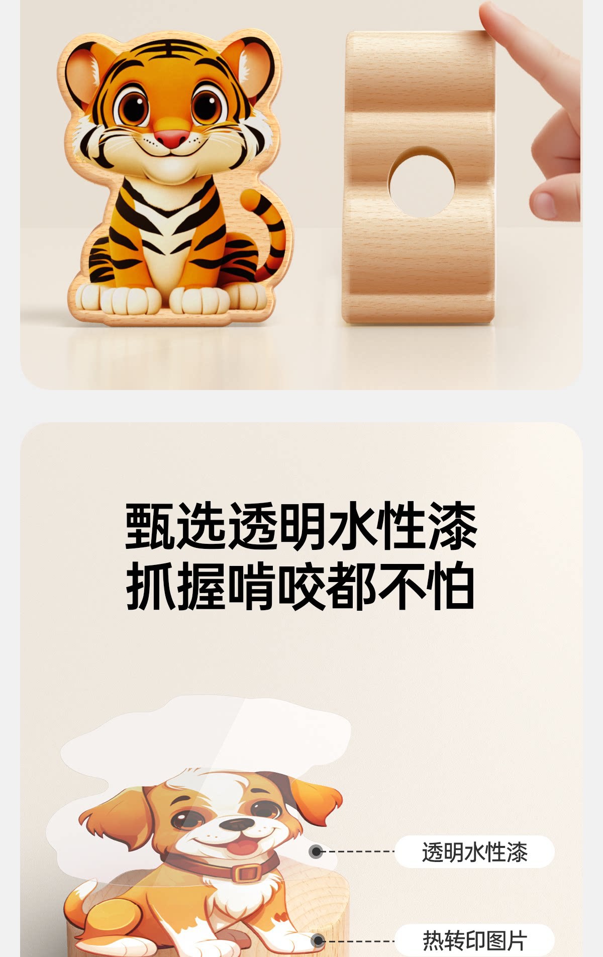 solid wood-animal beads 28 pieces (2 ropes with buggy bag)