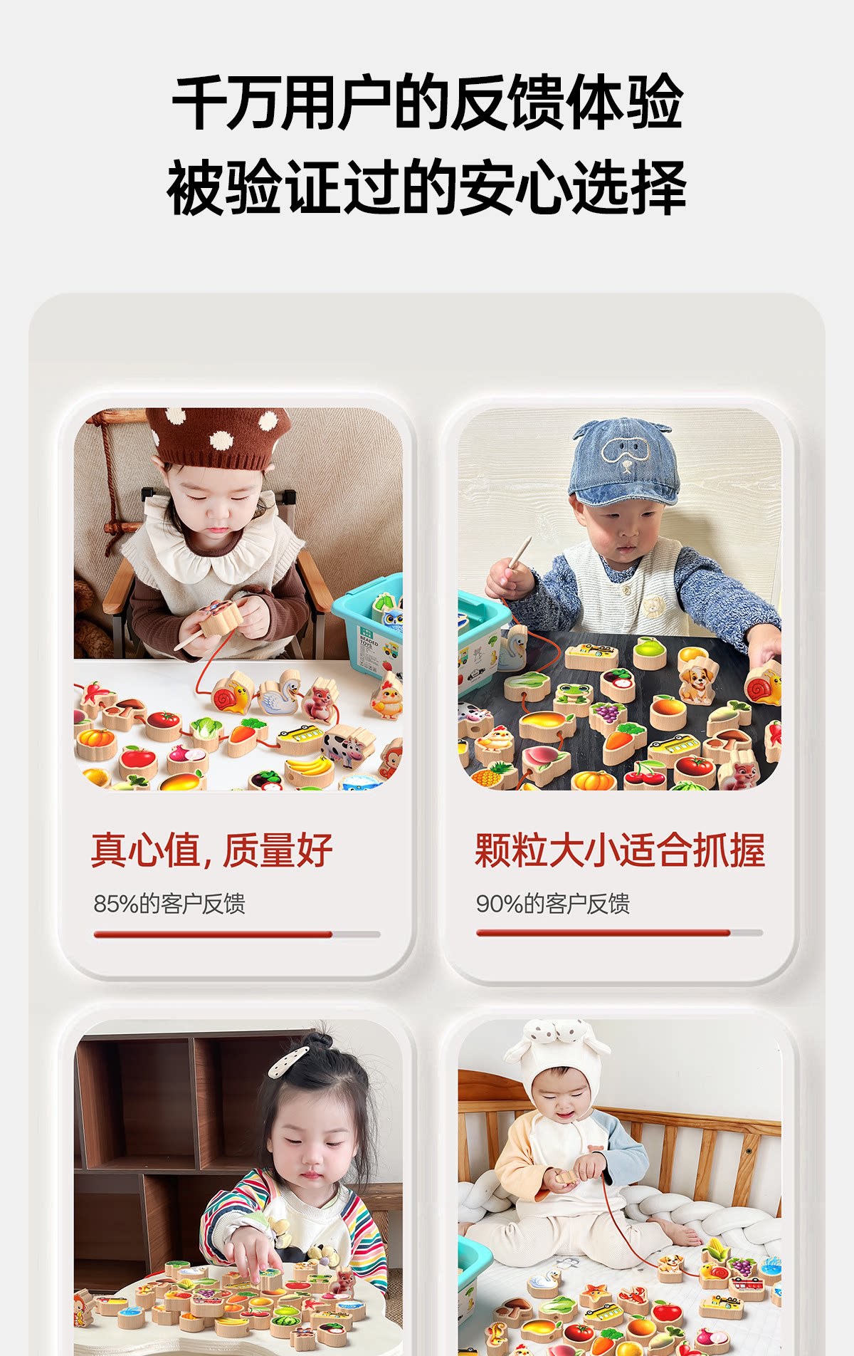 solid wood large-bead stringing toy with 69 beads [fruits + animals + vegetables + vehicles +6 strings] in a bag