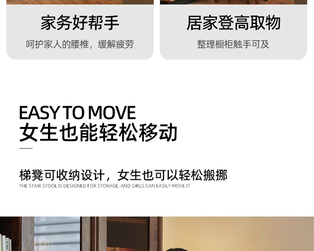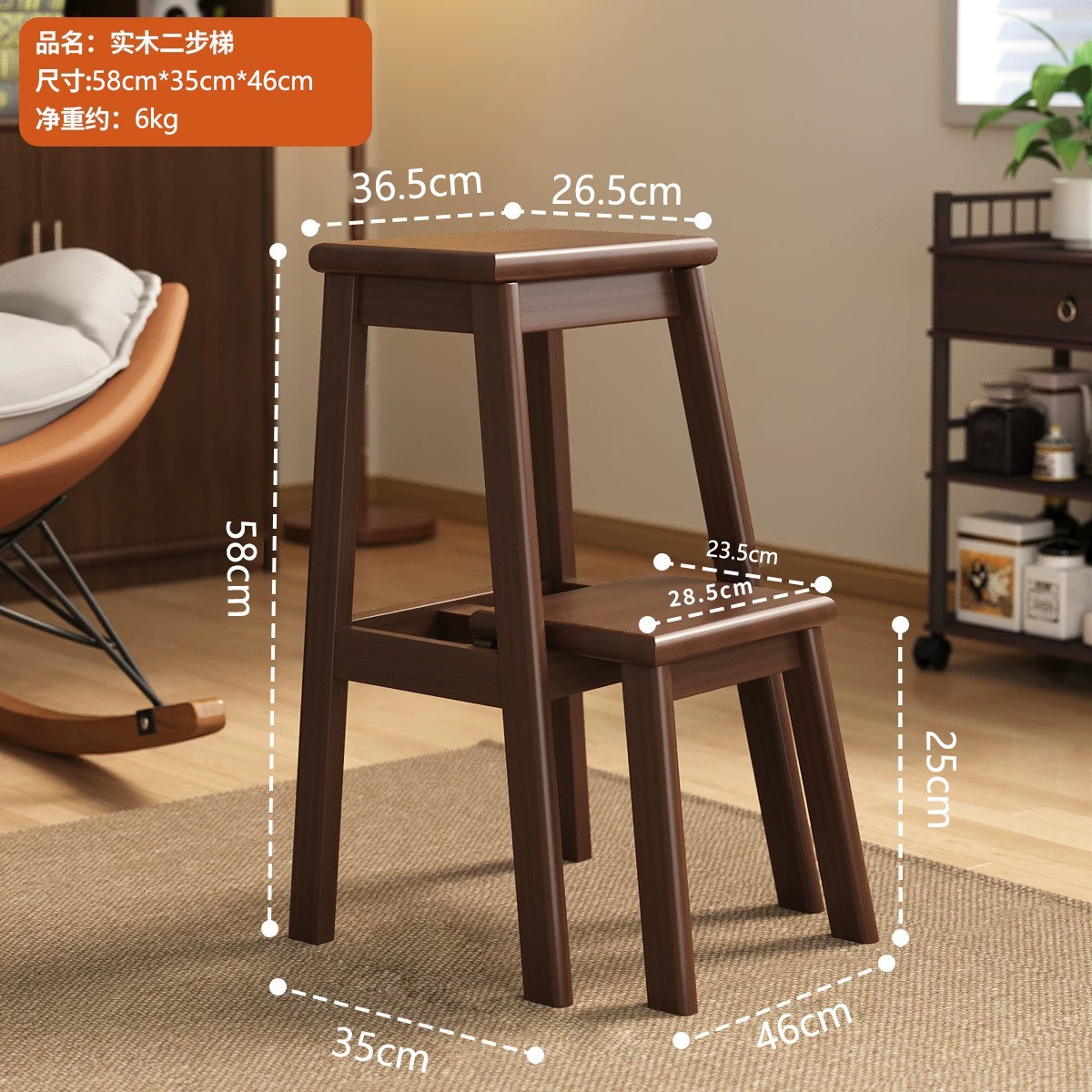 [full package delivery] push and pull two step ladder-walnut color
