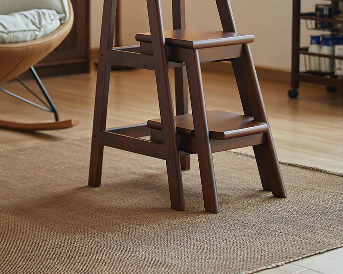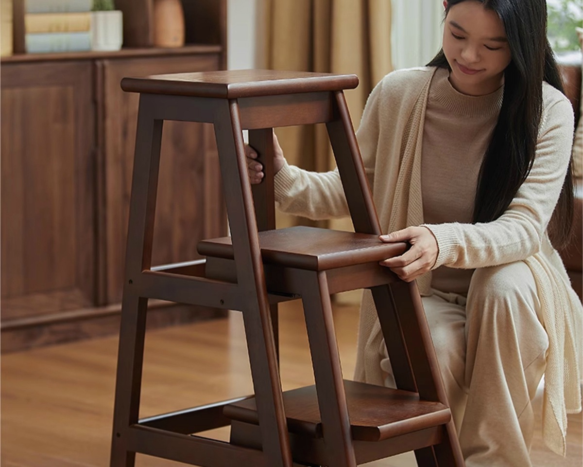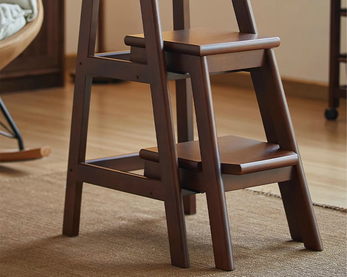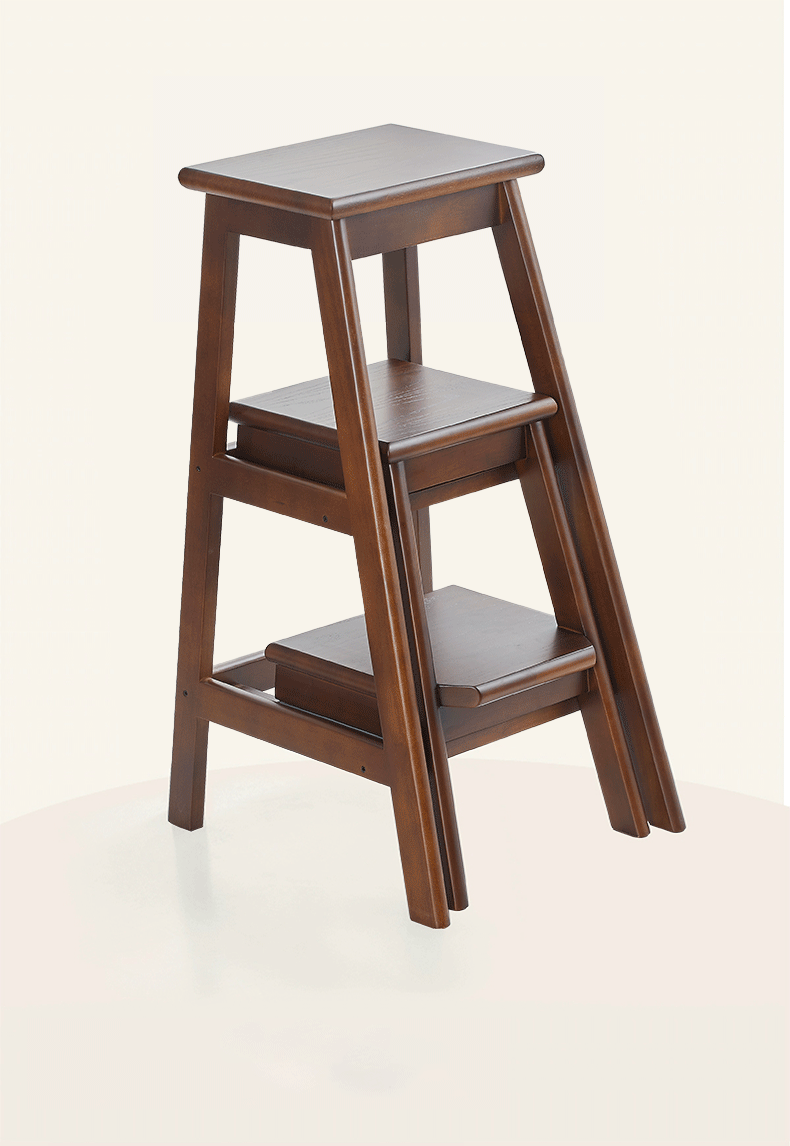 household ladder push-pull three-step ladder-walnut color