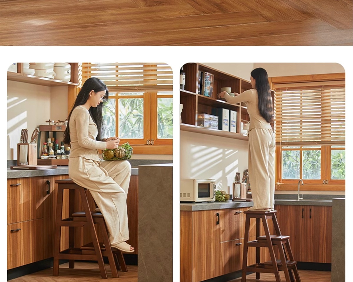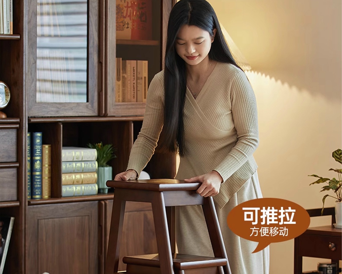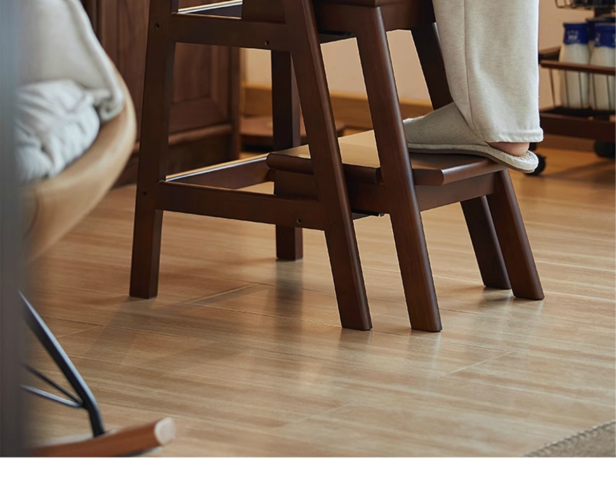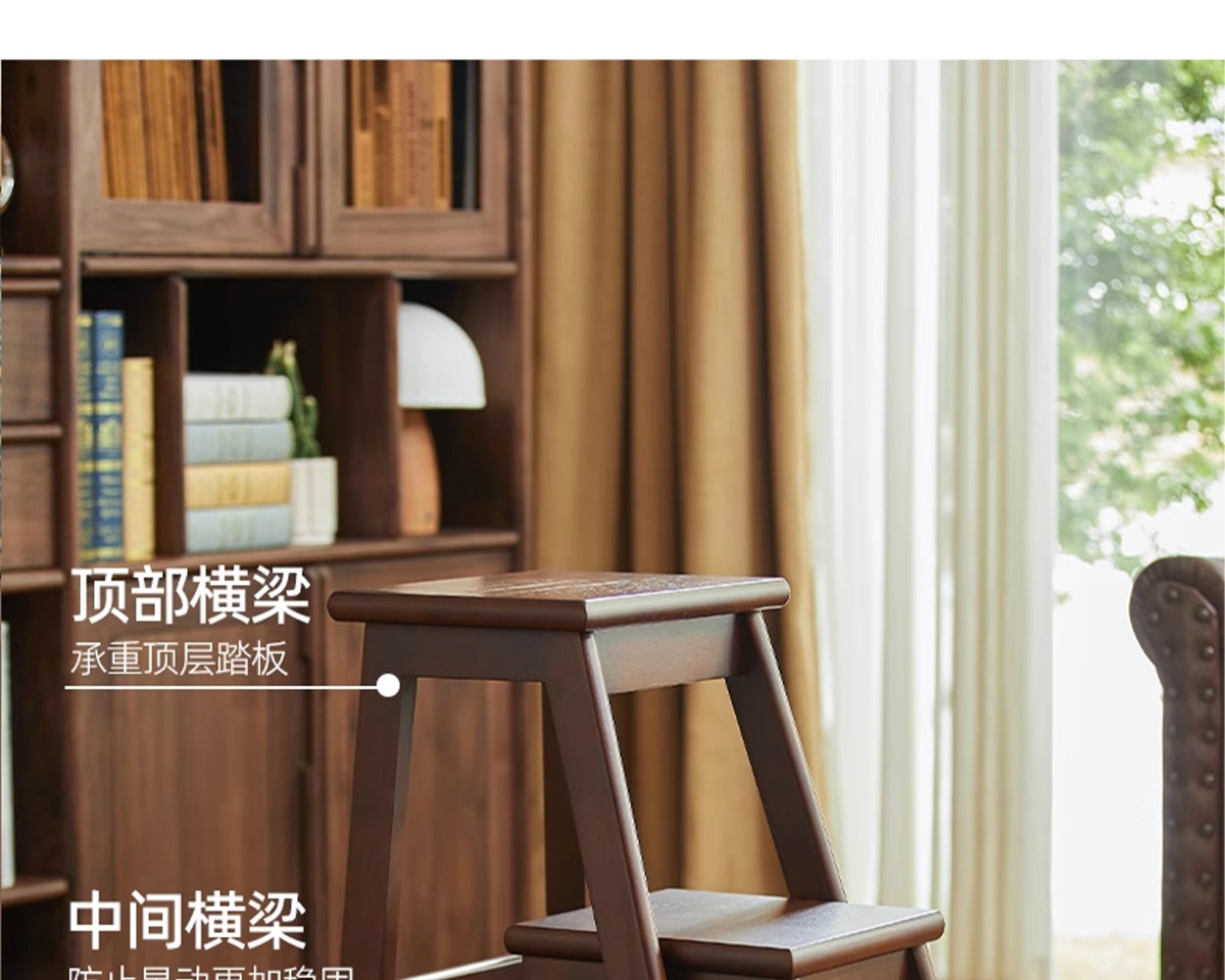 household ladder push-pull three-step ladder-walnut color