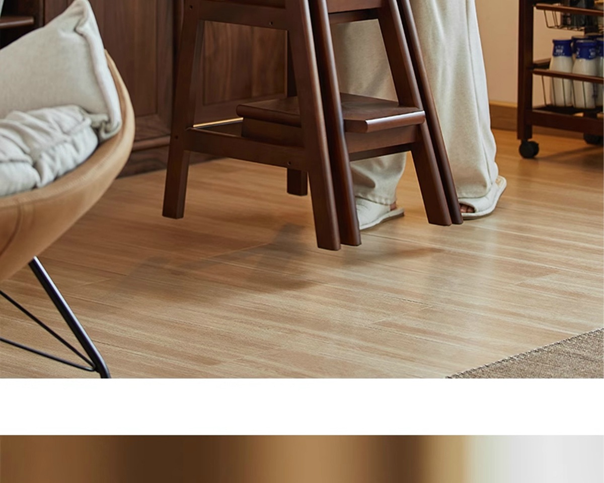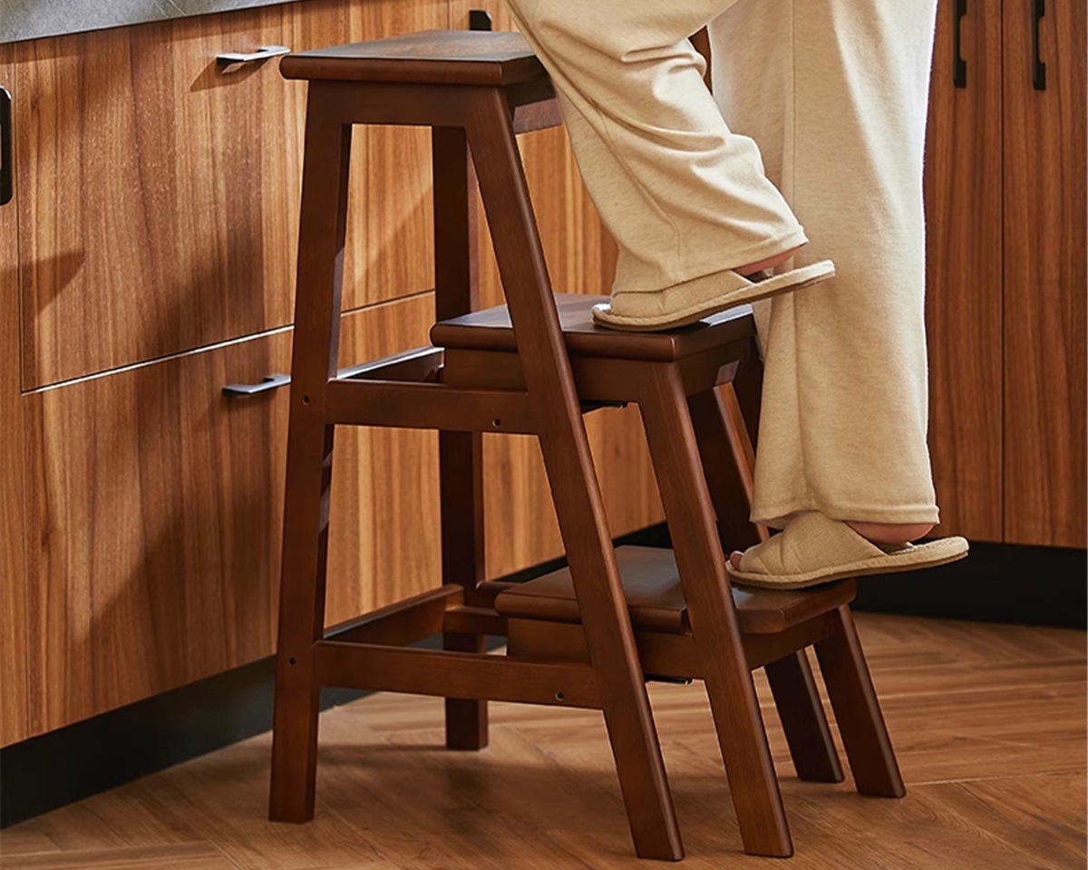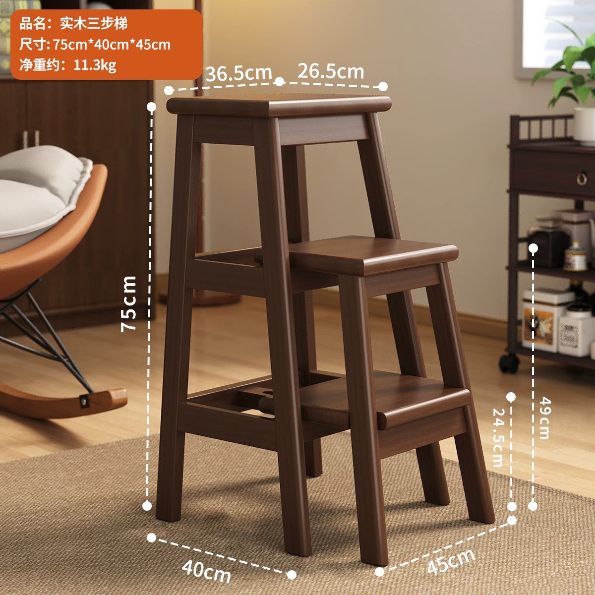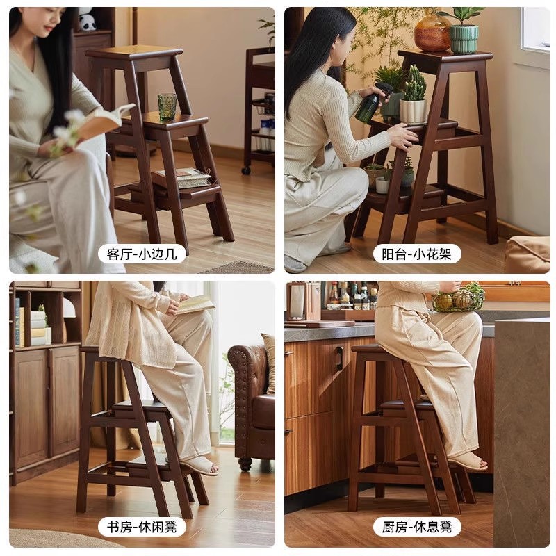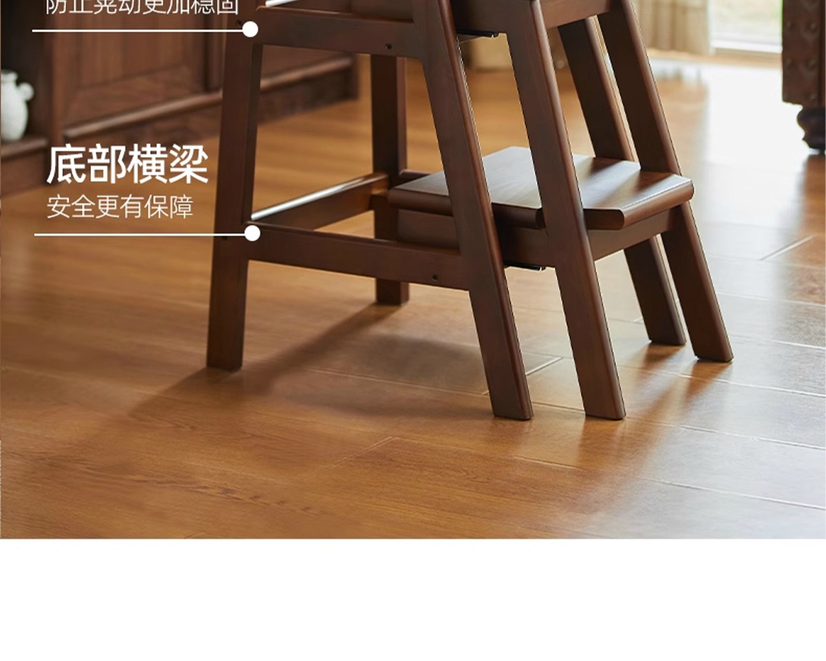 household ladder push-pull three-step ladder-walnut color