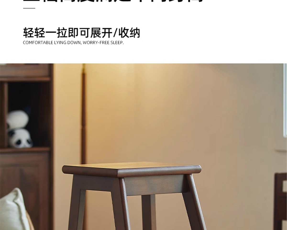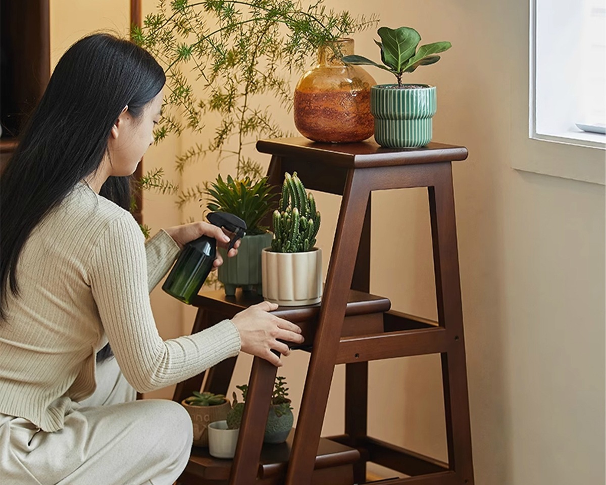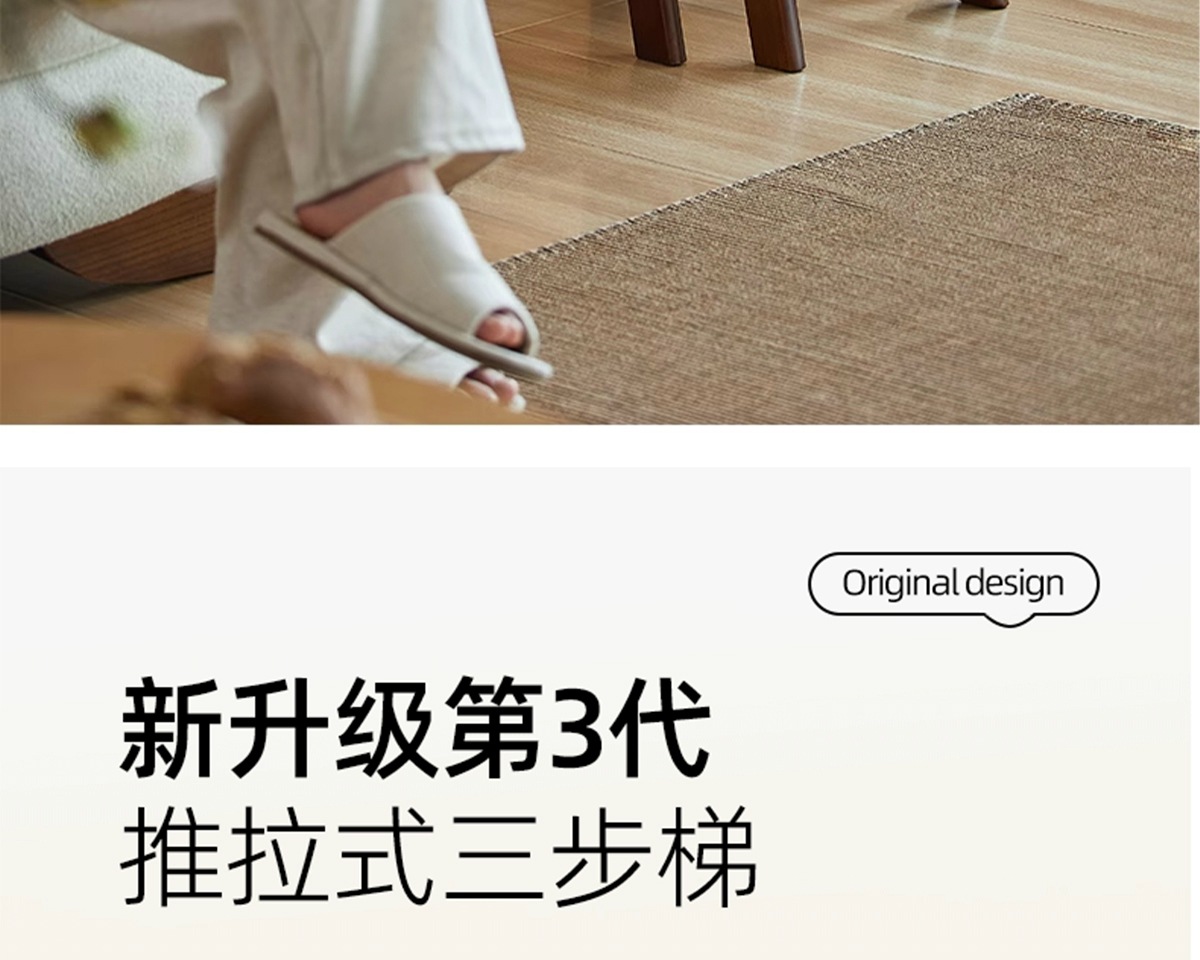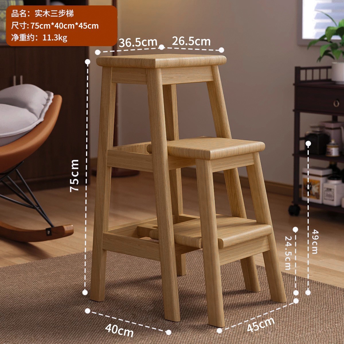 household ladder push-pull three-step ladder-walnut color