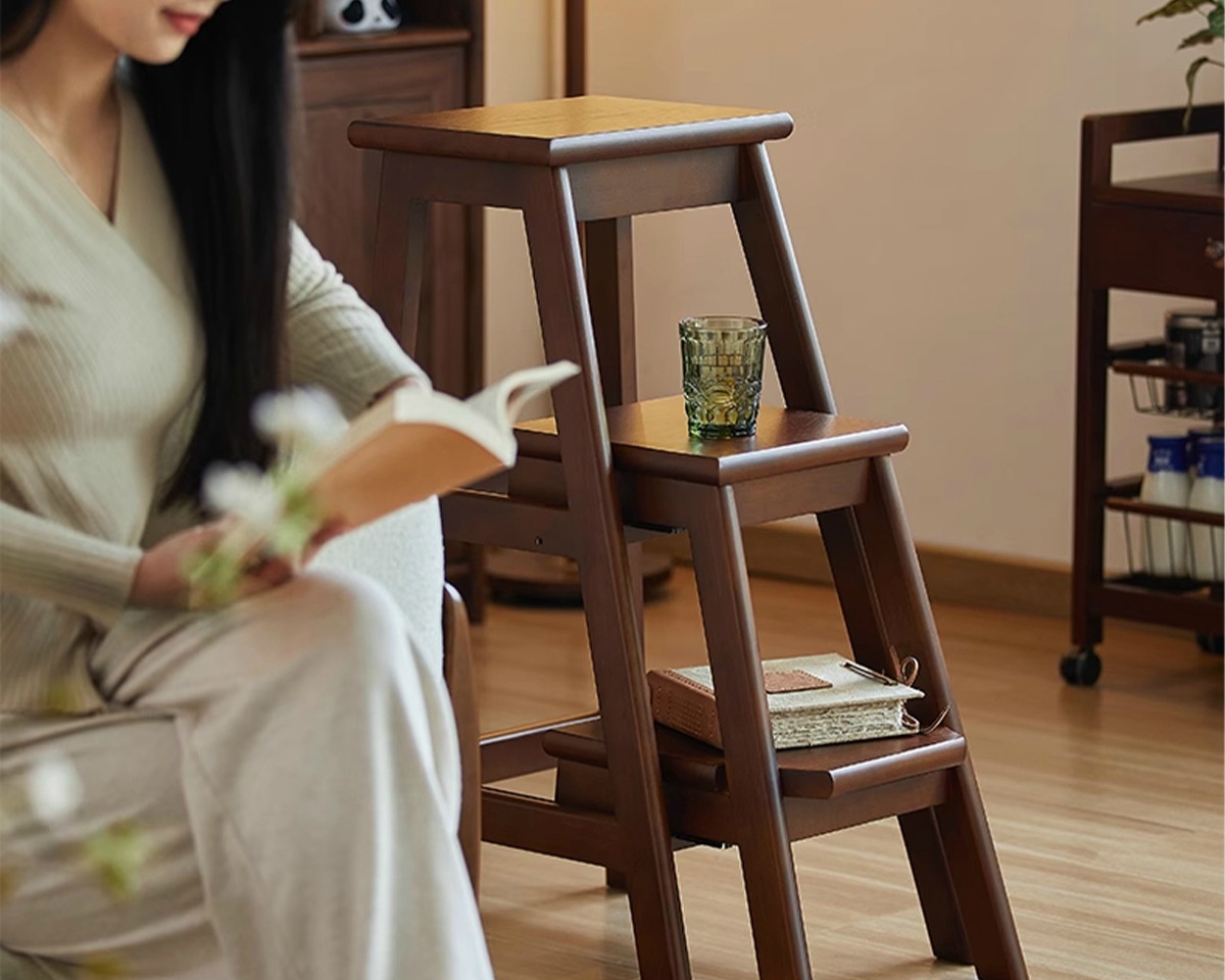 folding three-step ladder-walnut [with drawer]]