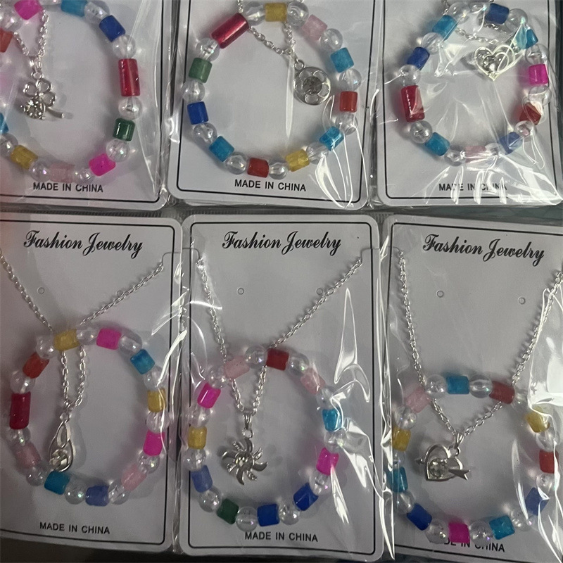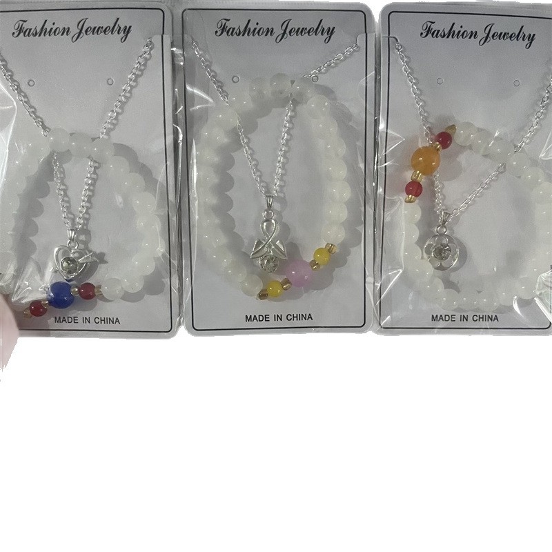 This product comes in a pack of 12 sets, each set includes one beaded bracelet and one necklace, and the styles are randomly distributed.