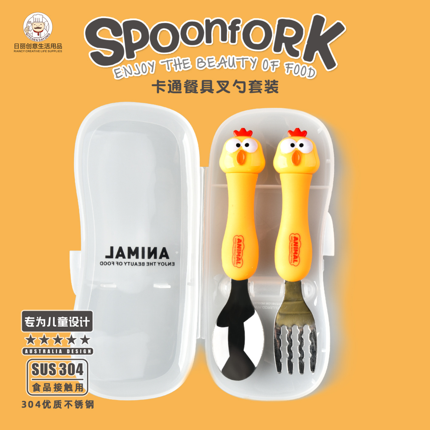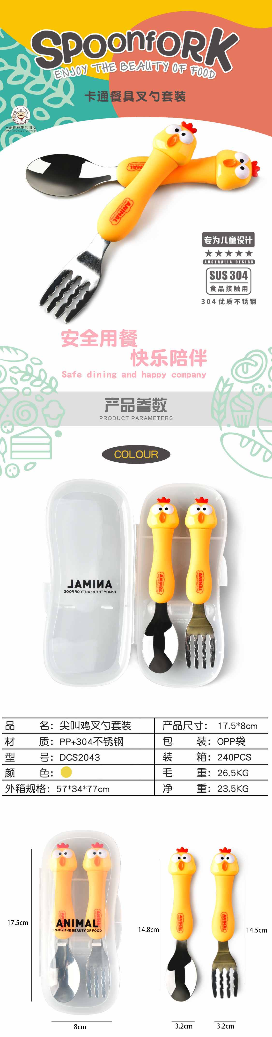 dcs2043-scream chicken spork set (yellow)