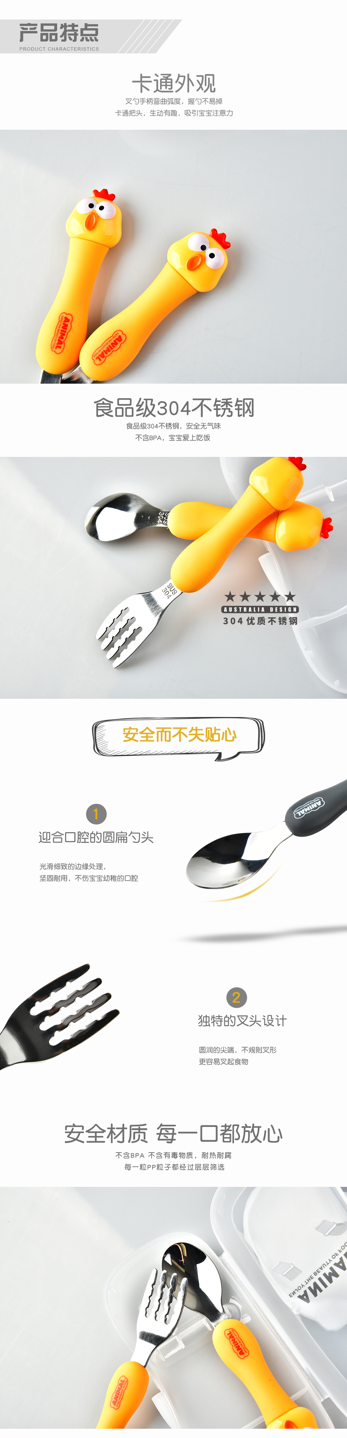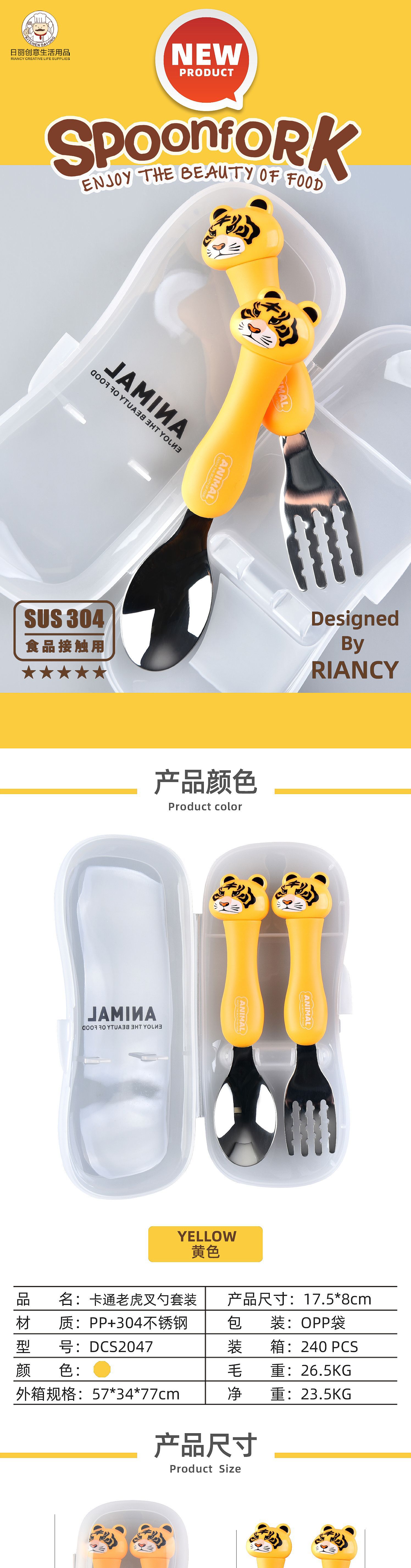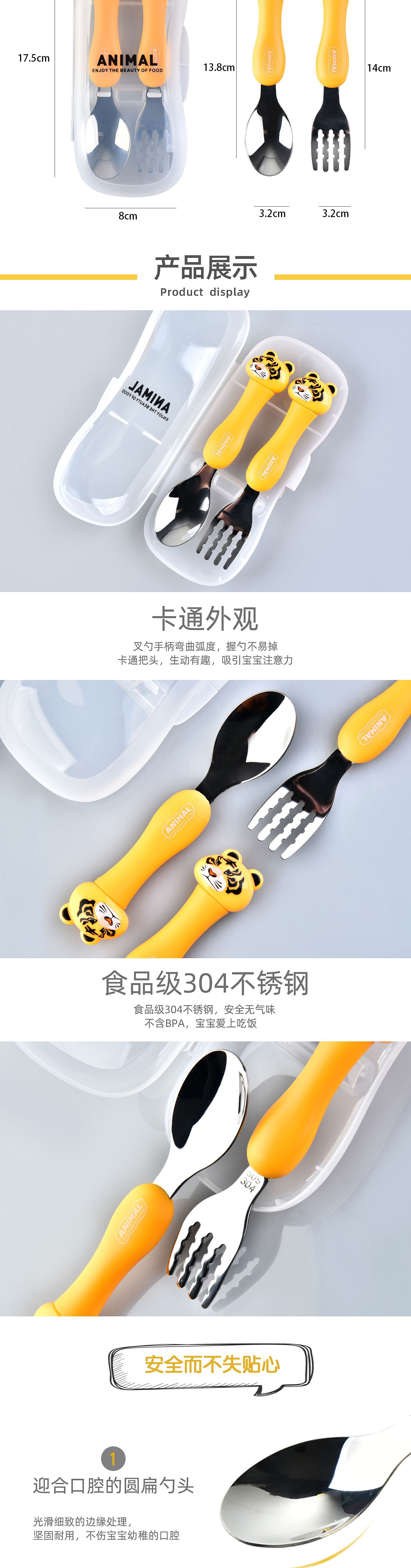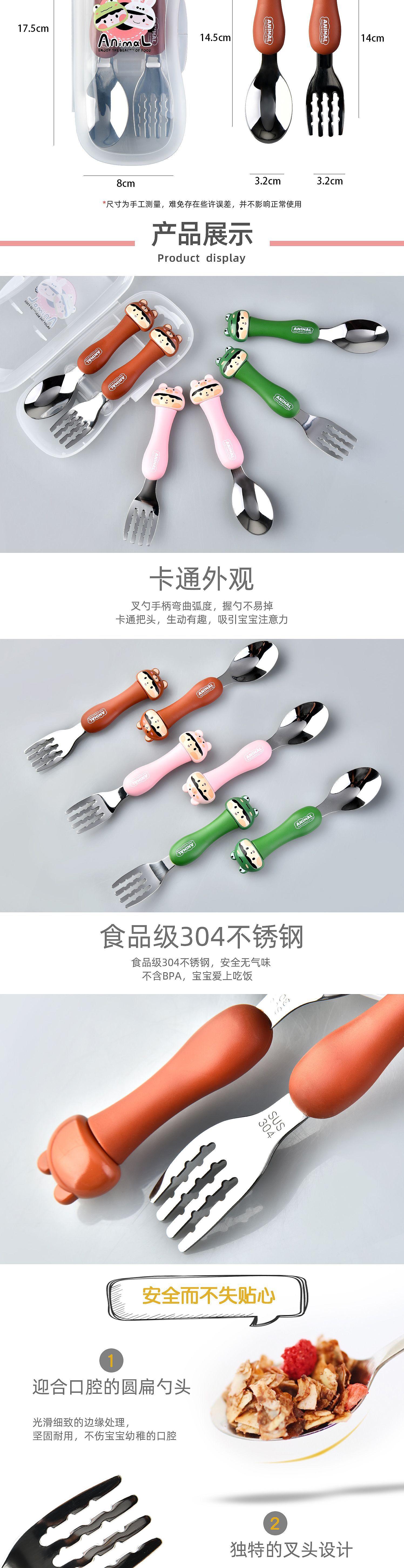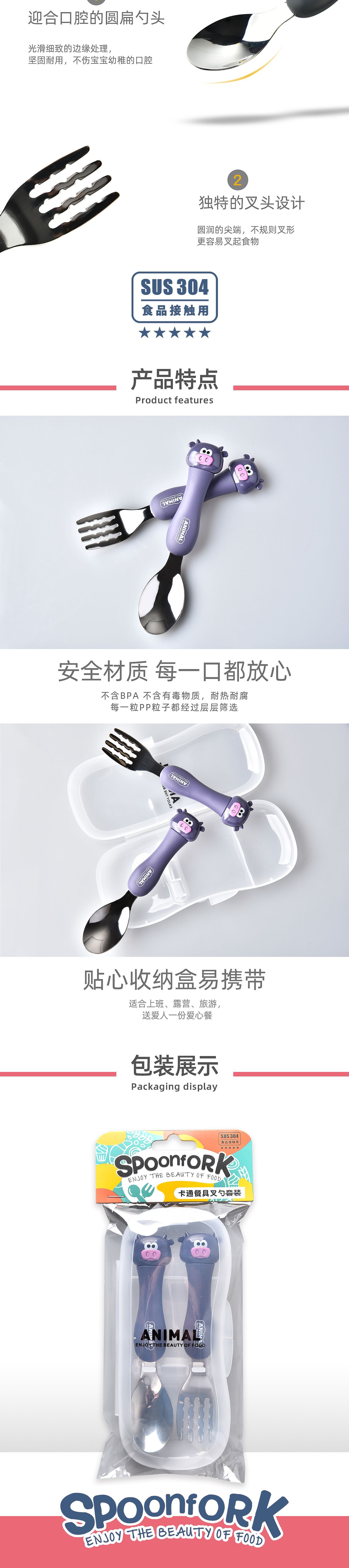 dcs2041-cartoon animal spork set (gray/yellow/pink/green/black/brown)