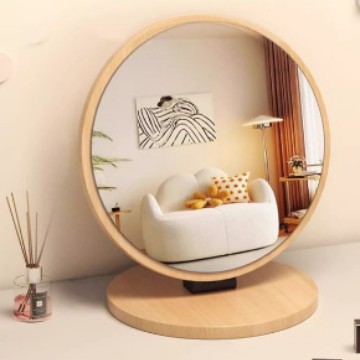 wooden-element mirror, simple desktop cosmetic mirror, rotatable, for home and student dormitory use, portable desktop cosmetic mirror