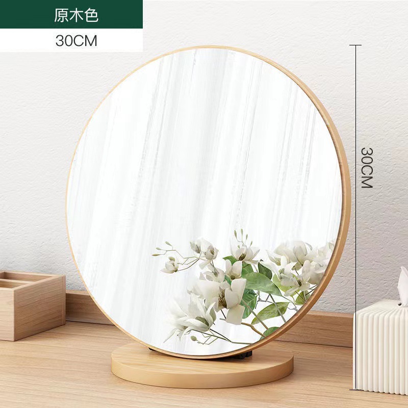 wood color large 30cm [foldable round mirror]]