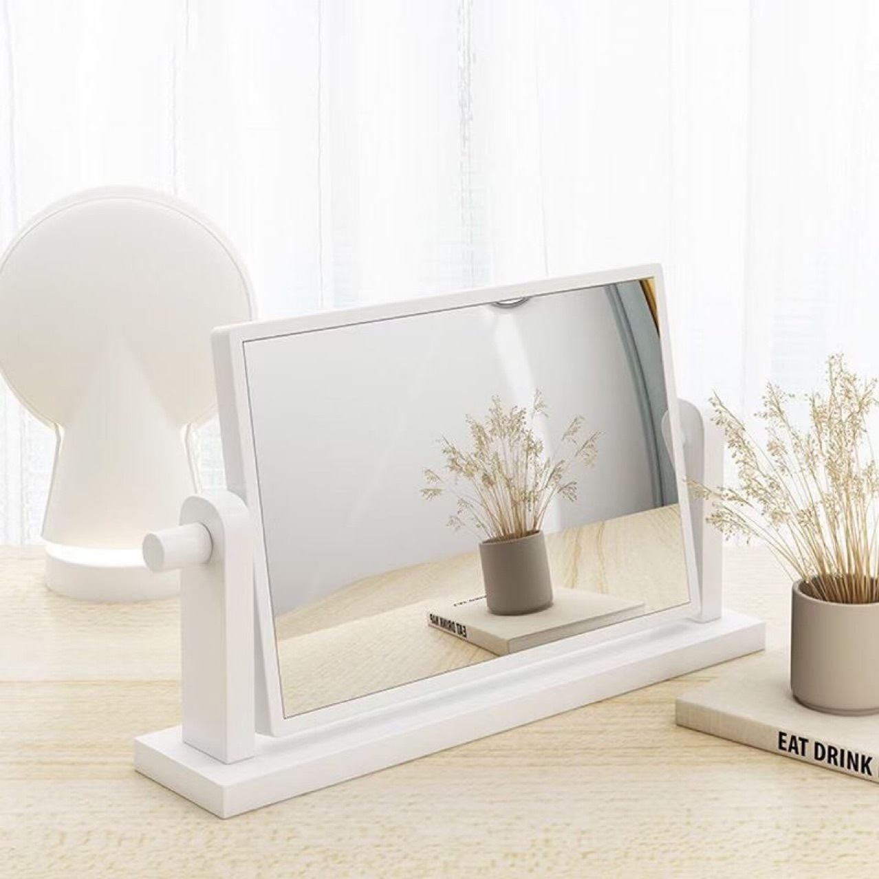 bamboo white rotating mirror [medium 19 x26x2cm]]