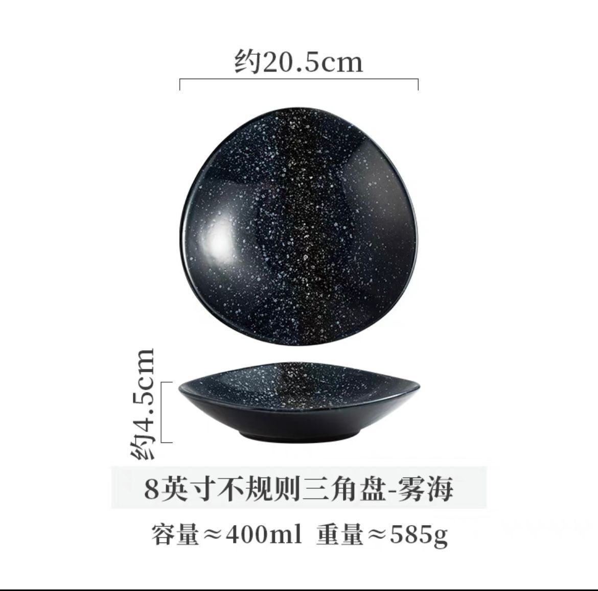 8-inch irregular triangle plate-black pearl