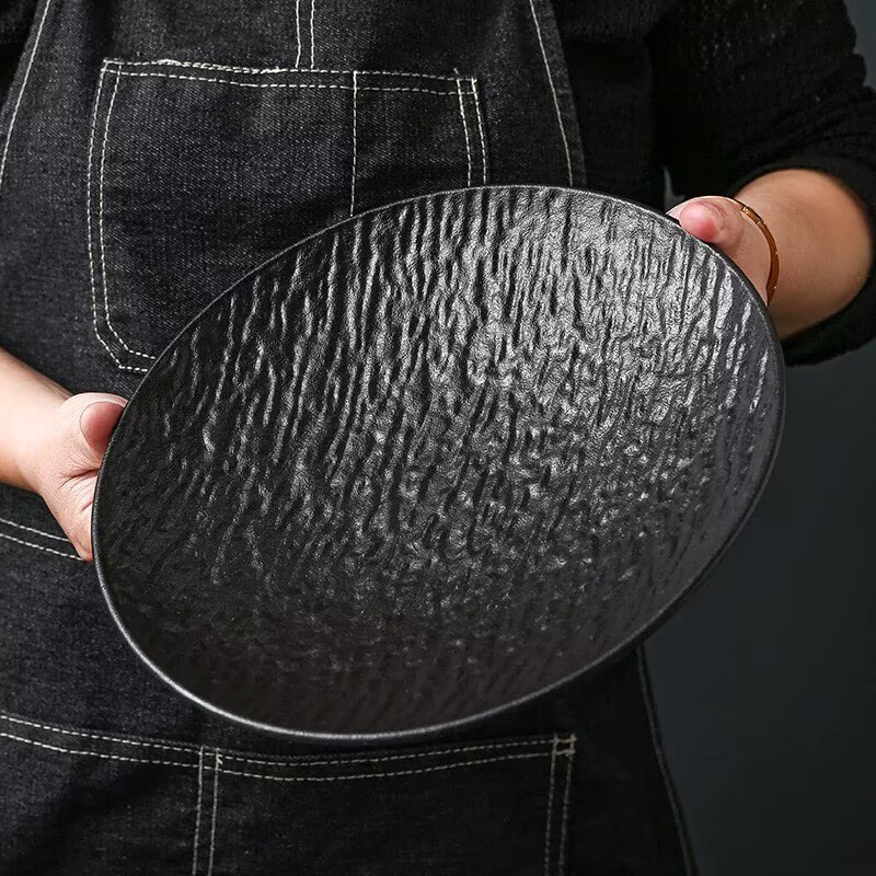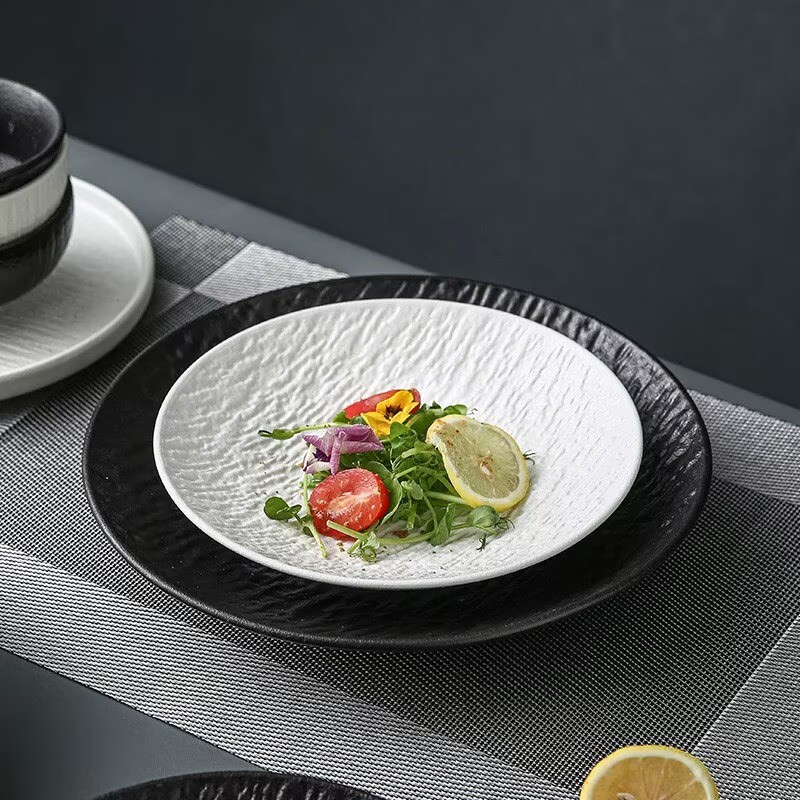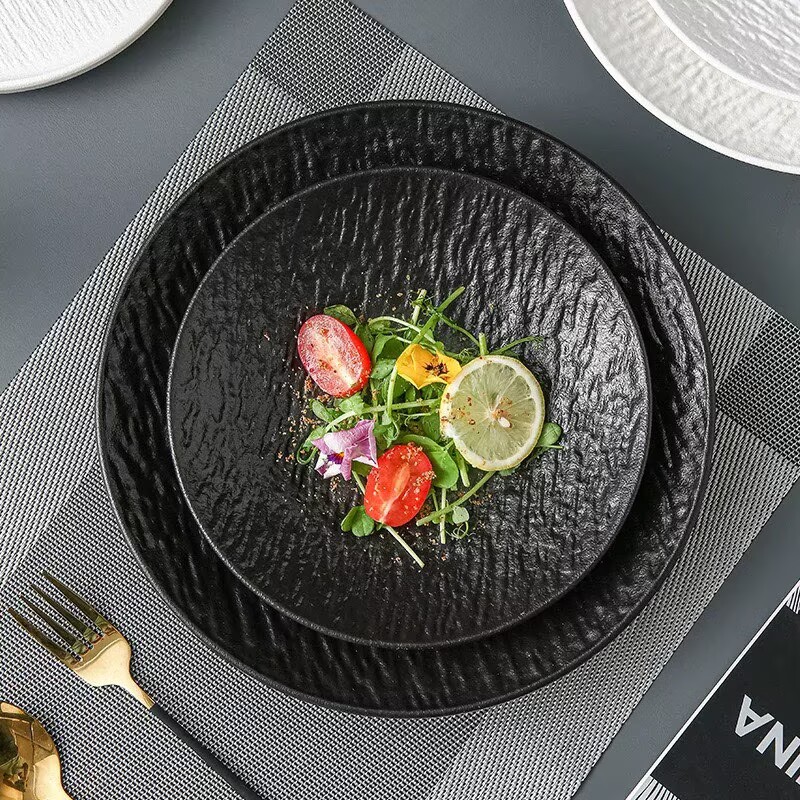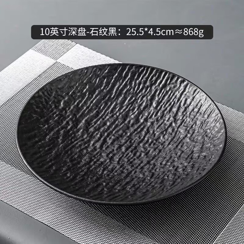 10-inch stone-patterned deep plates-black