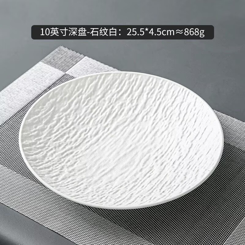 10-inch stone-patterned deep plates-white