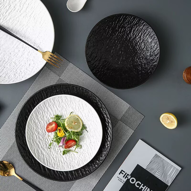 8-inch stone-patterned deep plates-hey color