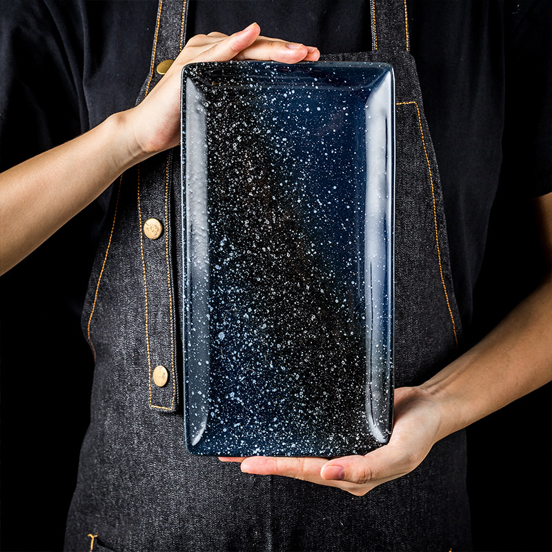 9-inch rectangular stone-pattern plate-misty sea