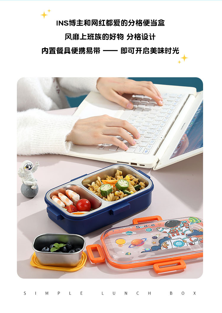 wx037441 700ml 2 compartments + 100ml stainless steel bowl (60/box astronaut)