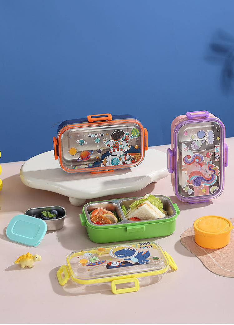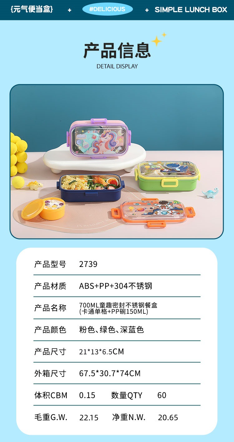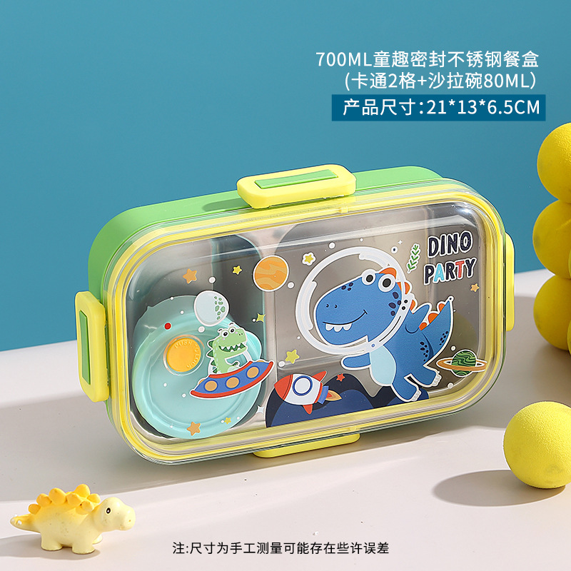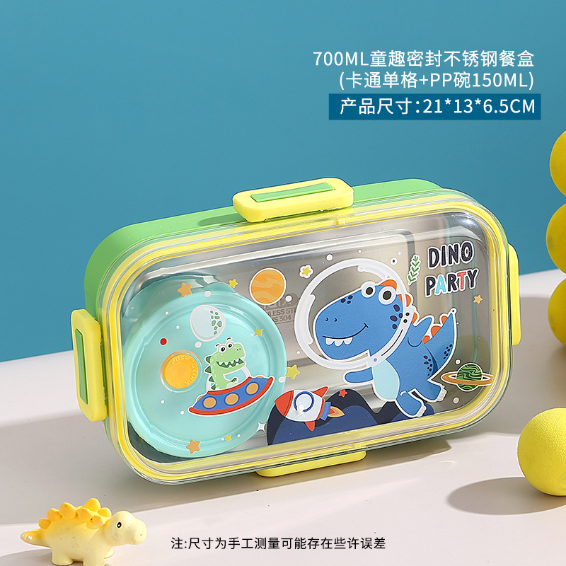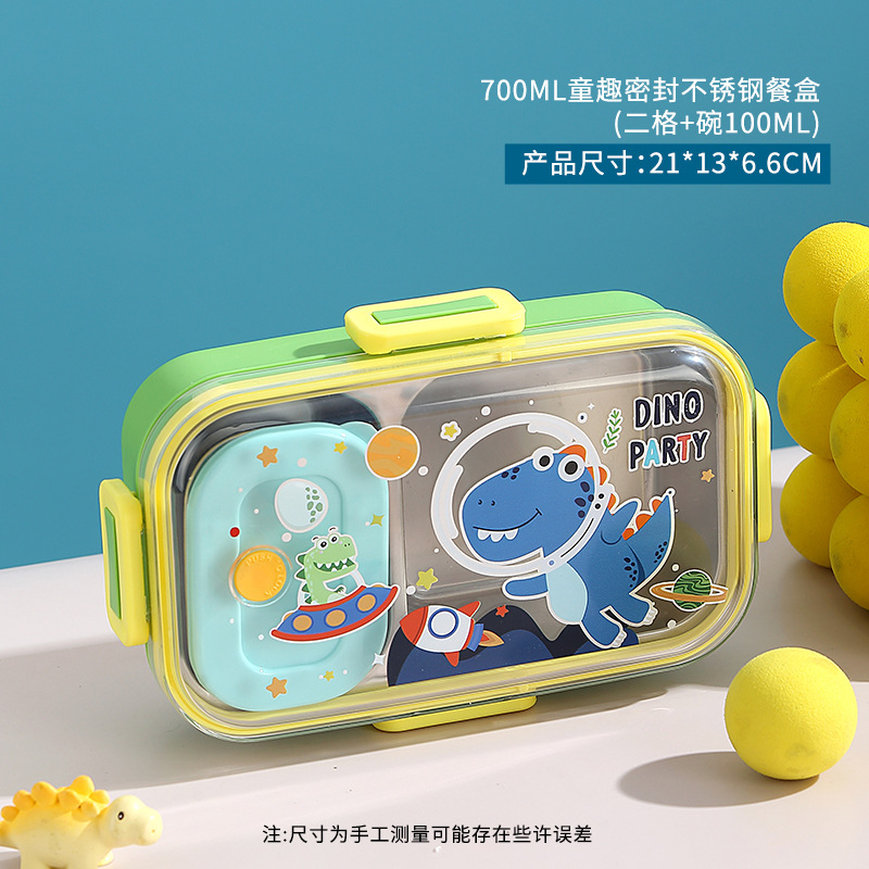 wx037441 700ml 2 compartments + 100ml stainless steel bowl (60/box dinosaur)