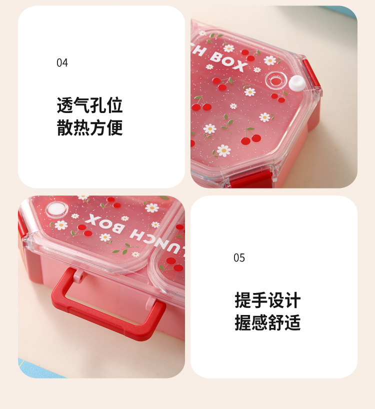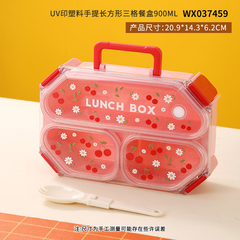 wx037459 rectangular plastic 3-compartment lunch box 900ml (72 per carton, cherry)