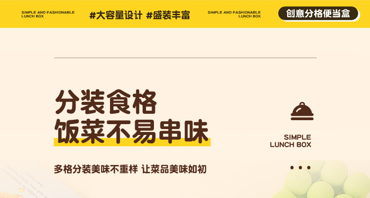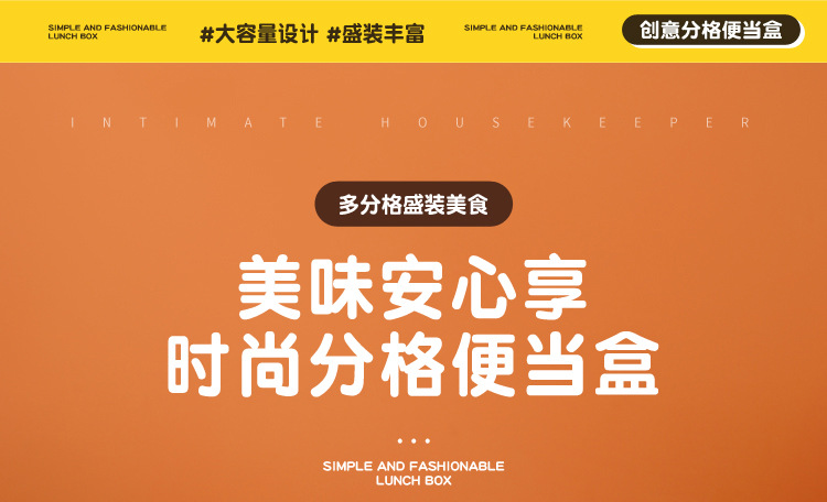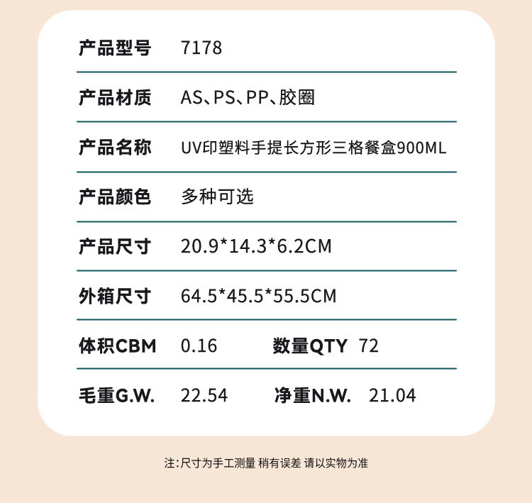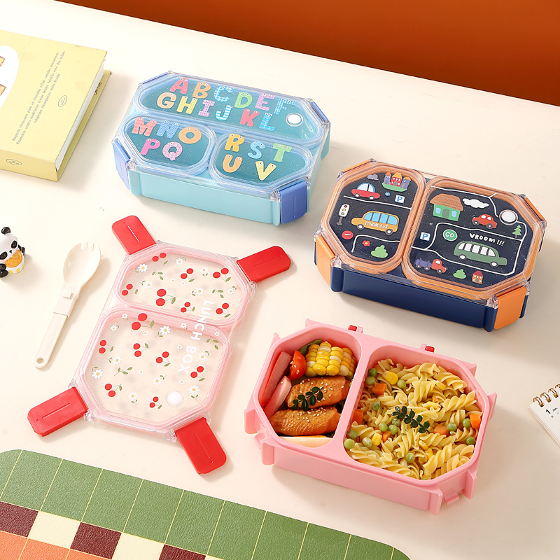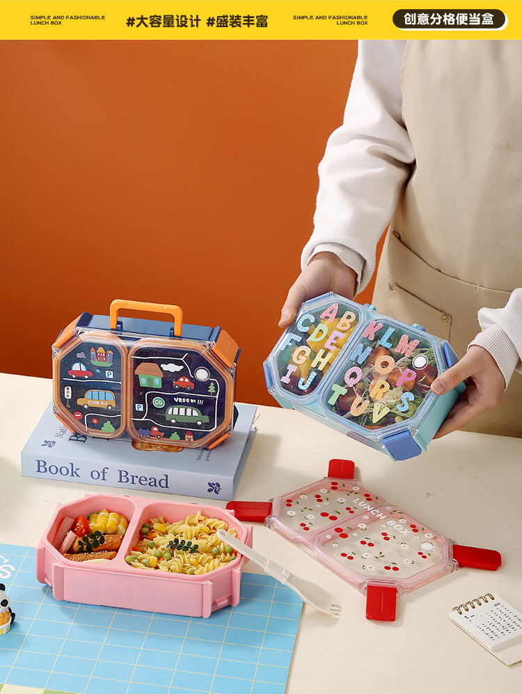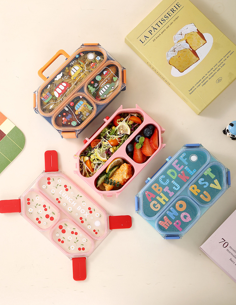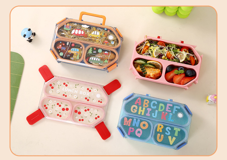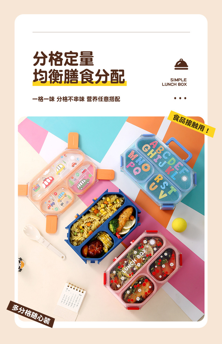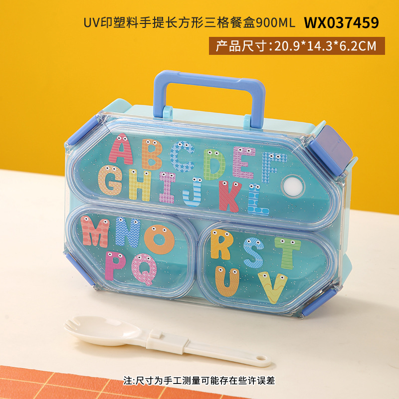 wx037459 rectangular plastic 3-compartment lunch box 900ml (72 per carton, letter print)