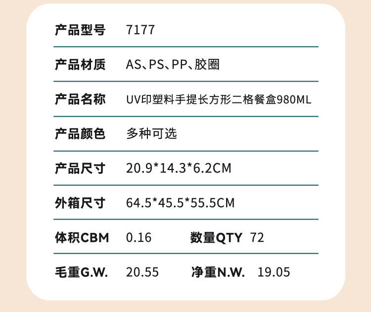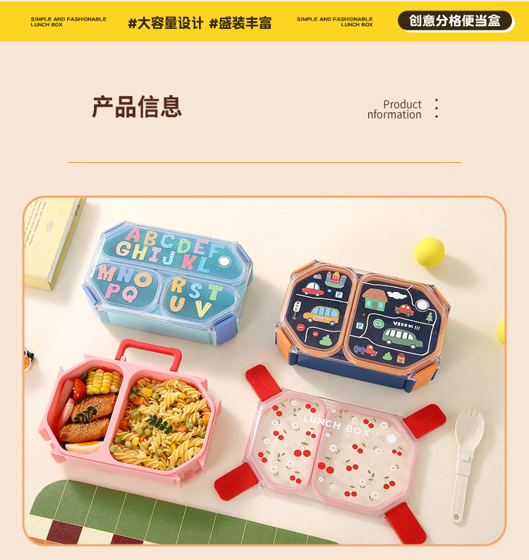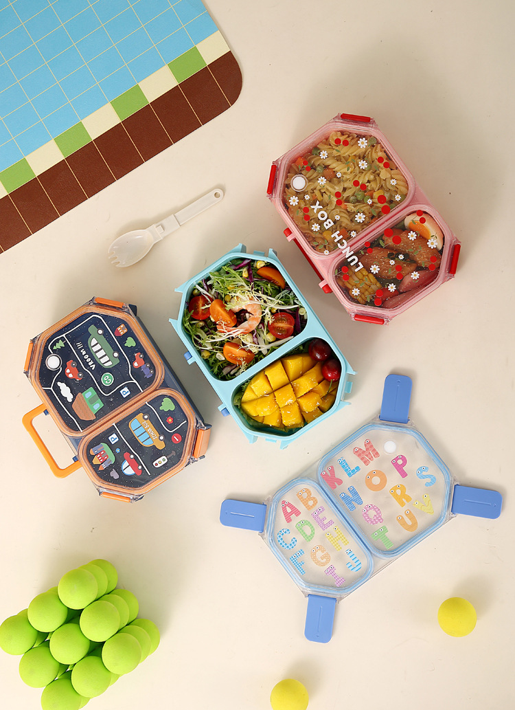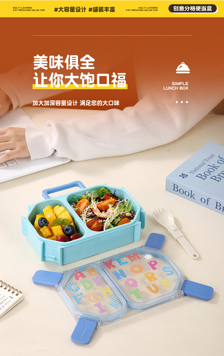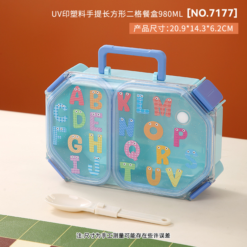 wx037458 rectangular plastic two-compartment lunch box 980ml (72 per carton, with letters)