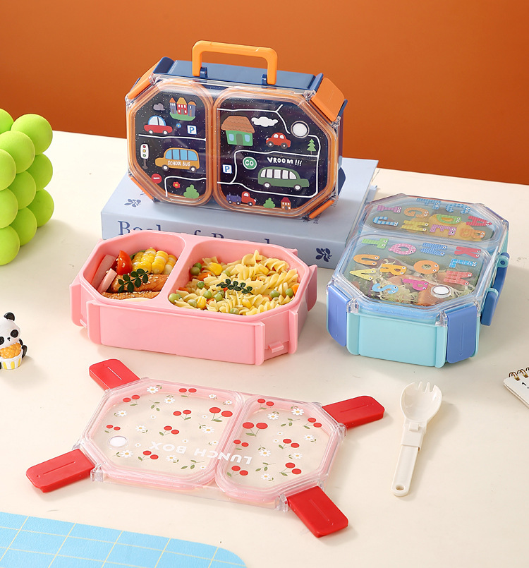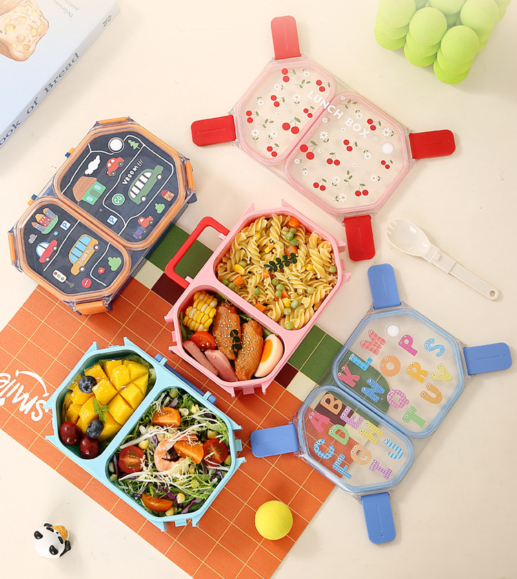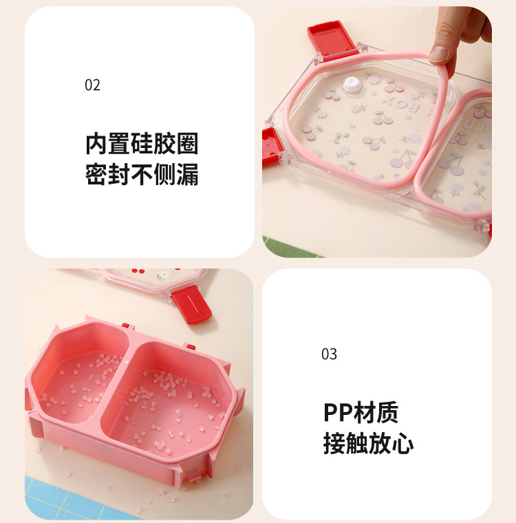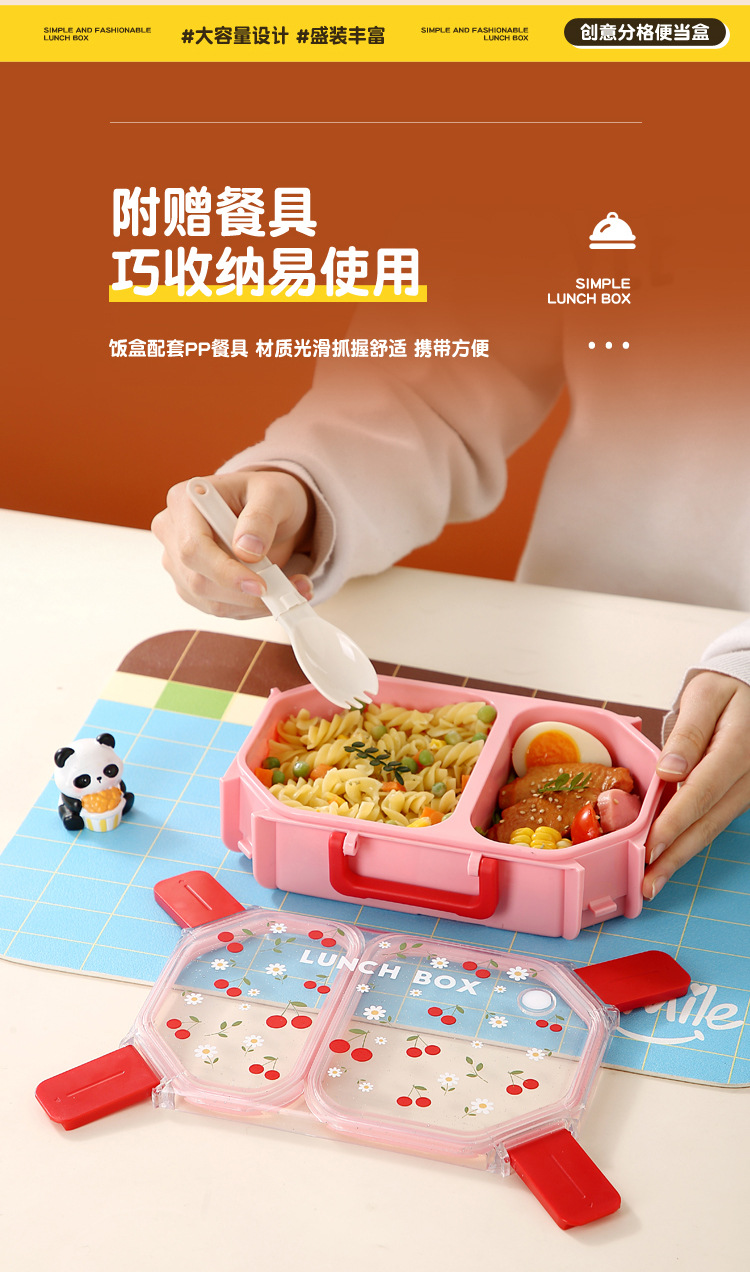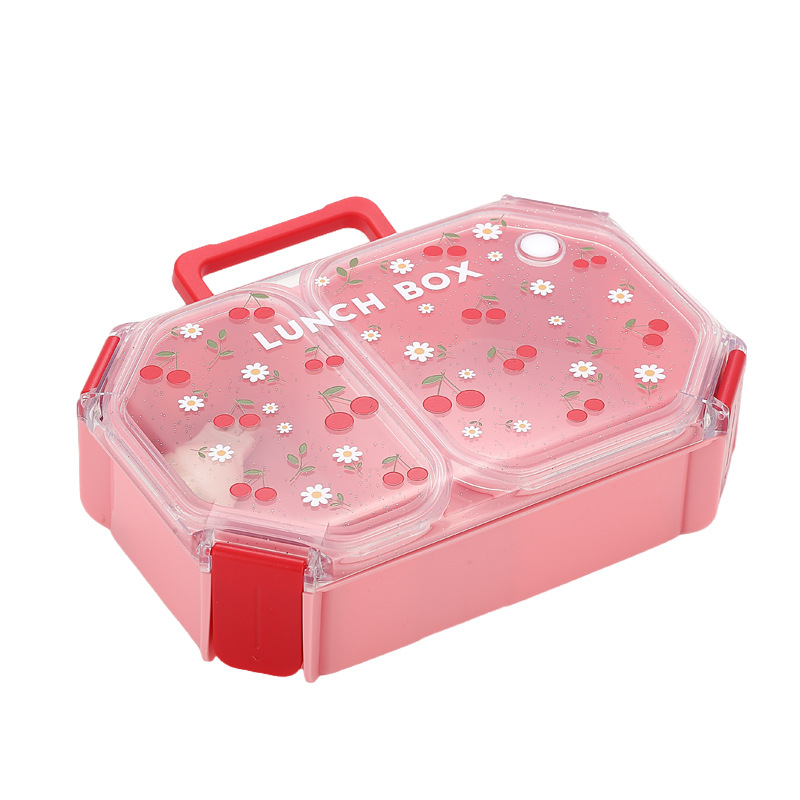 wx037458 rectangular plastic two-compartment lunch box 980ml (72 per carton, cherry)