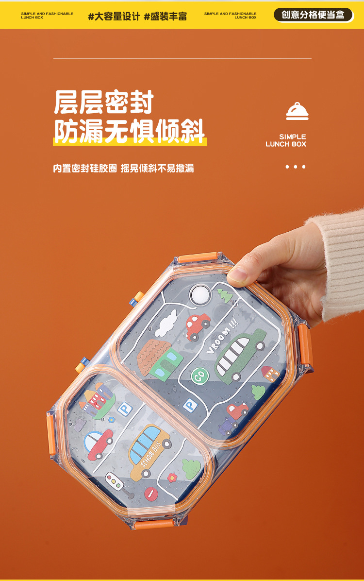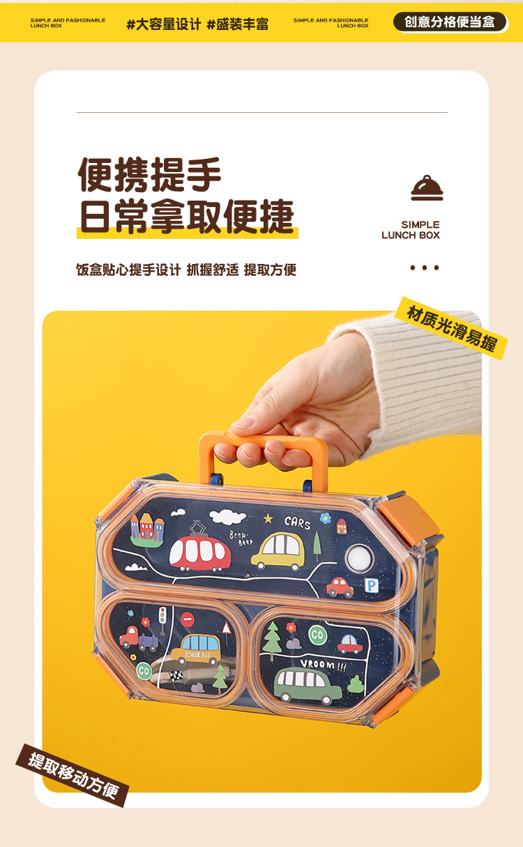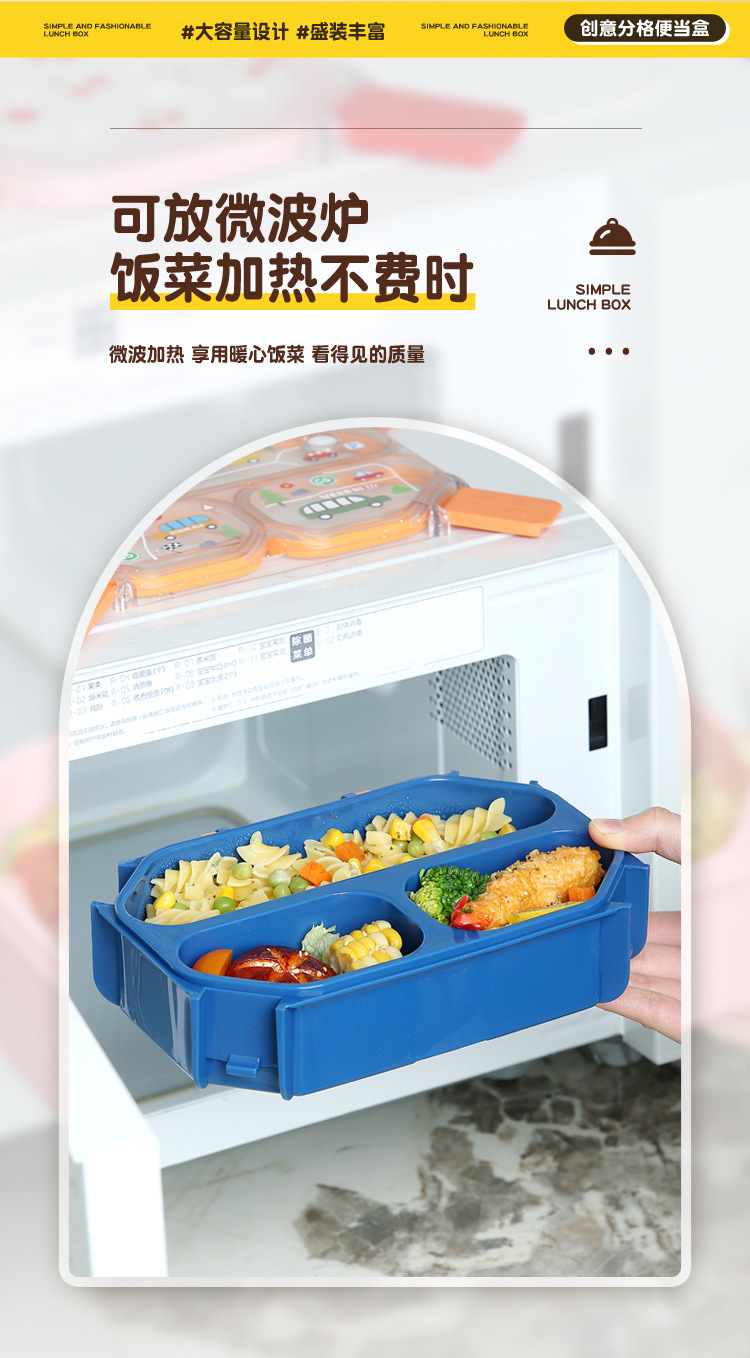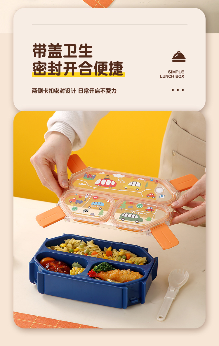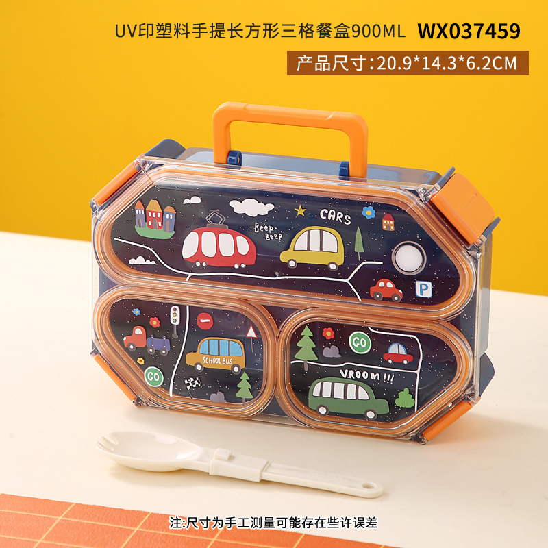 wx037459 rectangular plastic 3-compartment lunch box 900ml (72 per carton, for cars)