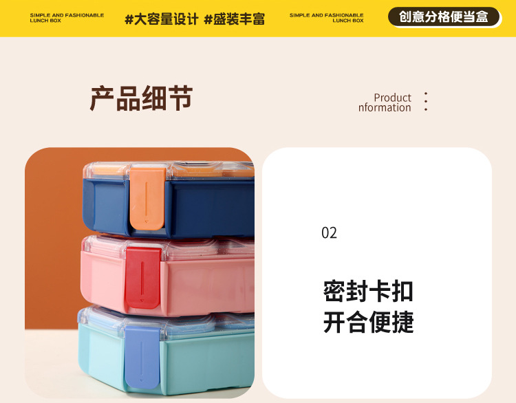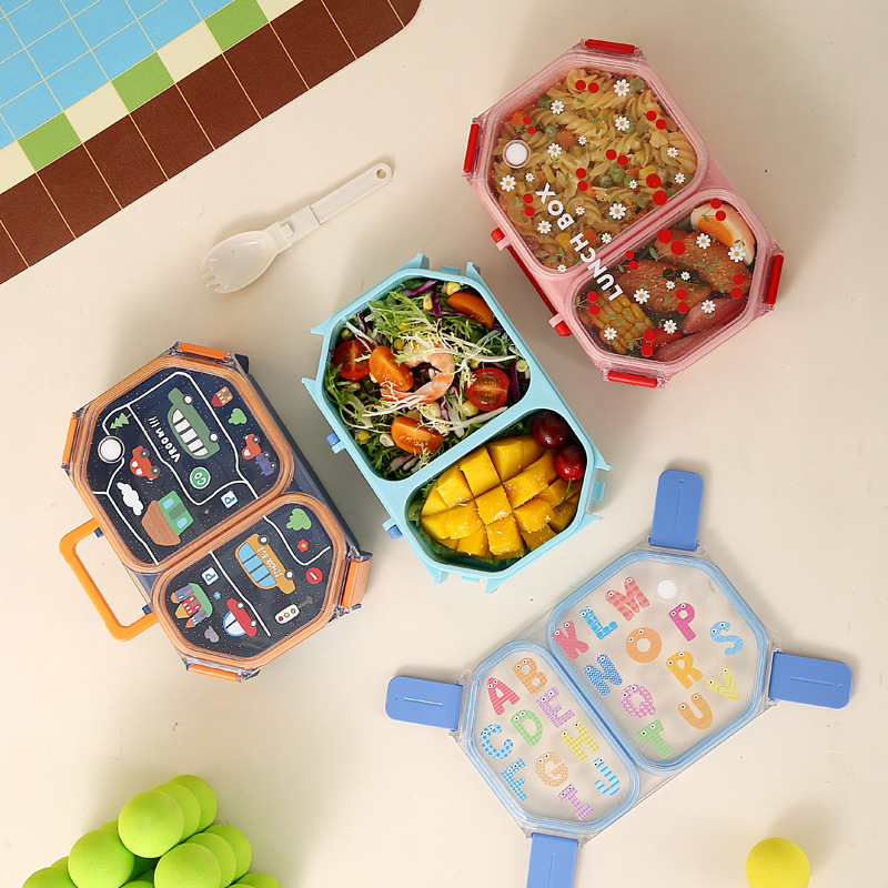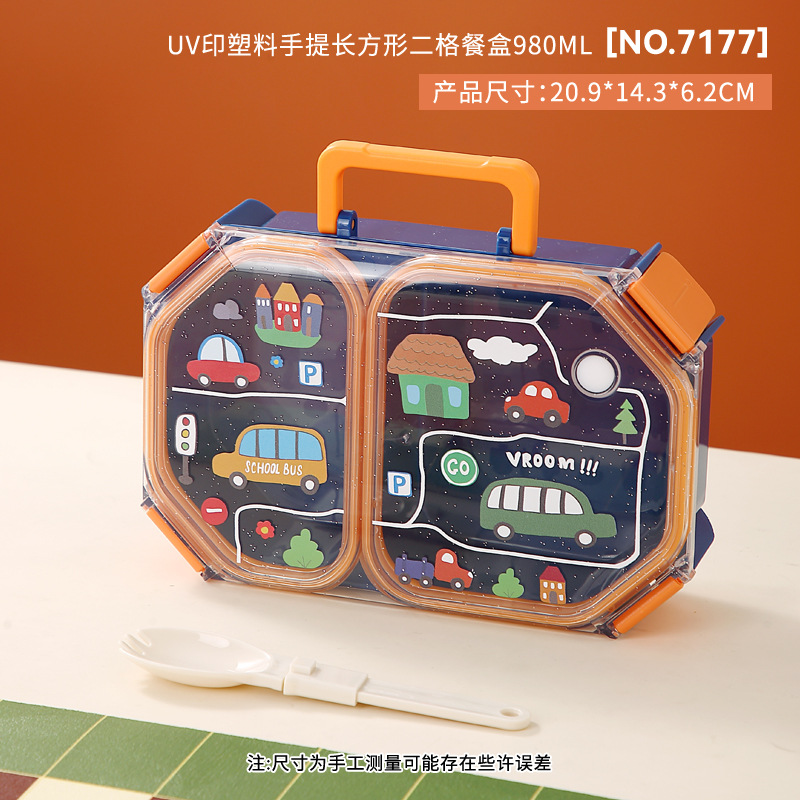 wx037458 rectangular plastic two-compartment lunch box 980ml (72 per carton, for cars)