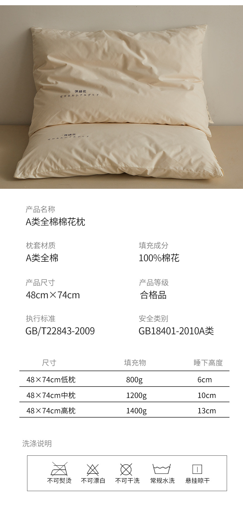 color: zero formaldehyde low loft pillow, zero formaldehyde medium pillow, zero formaldehyde high pillow