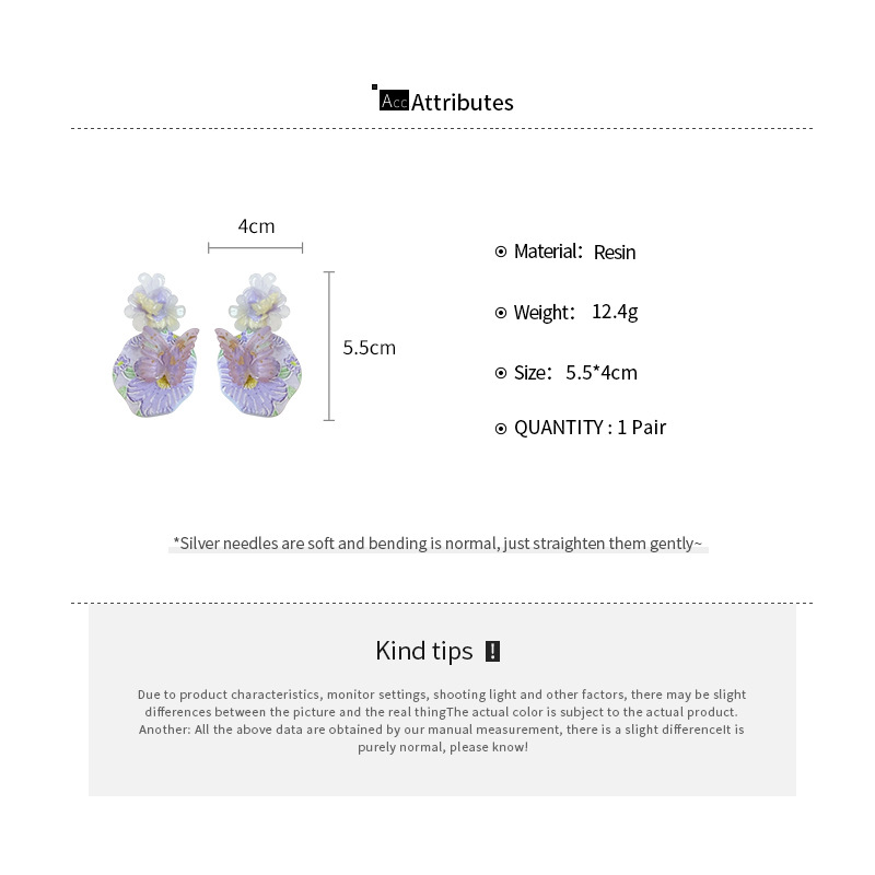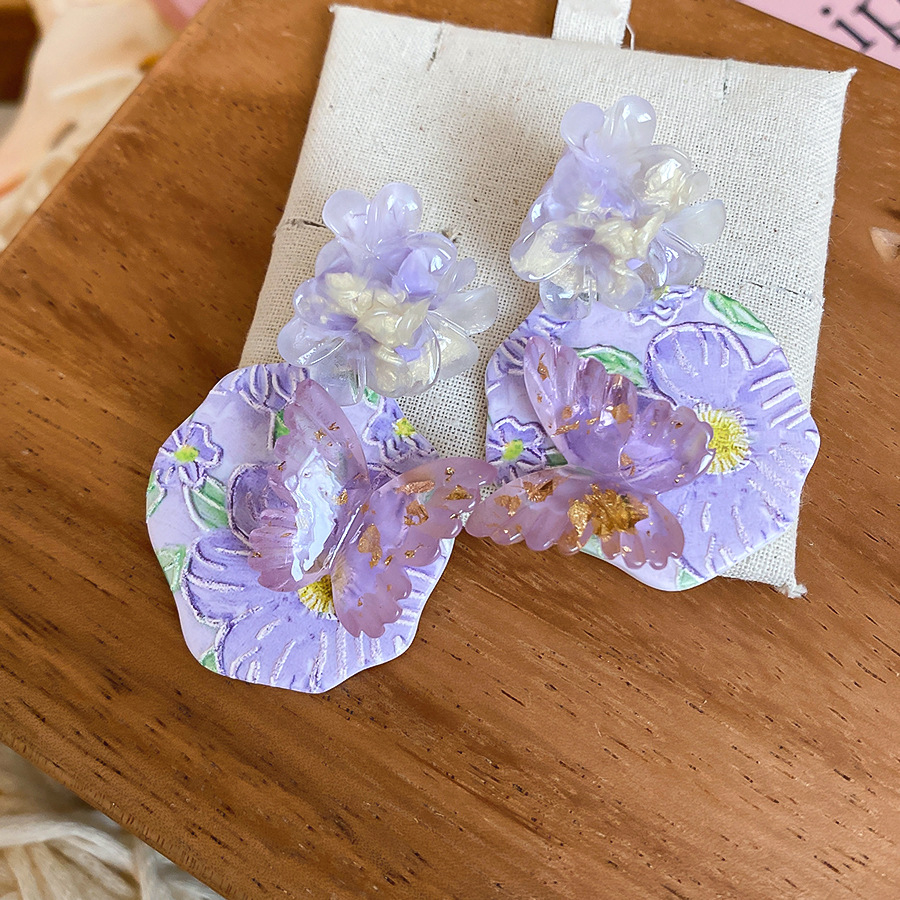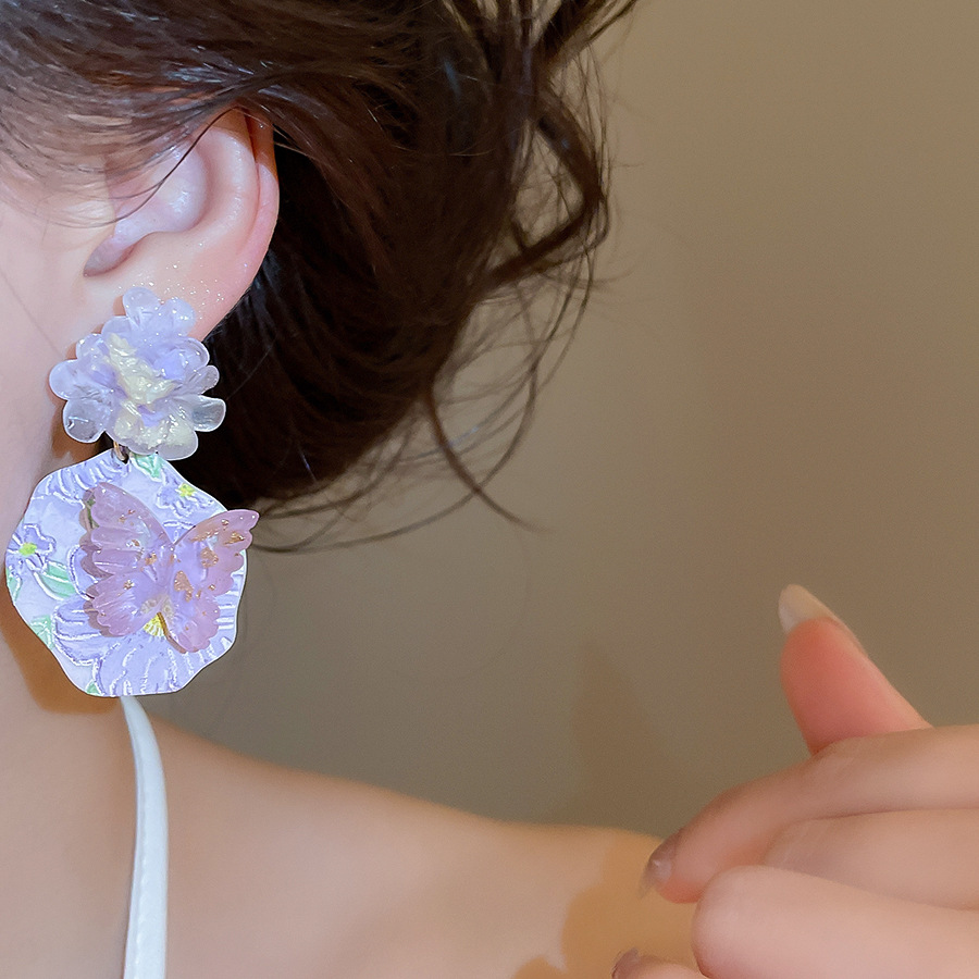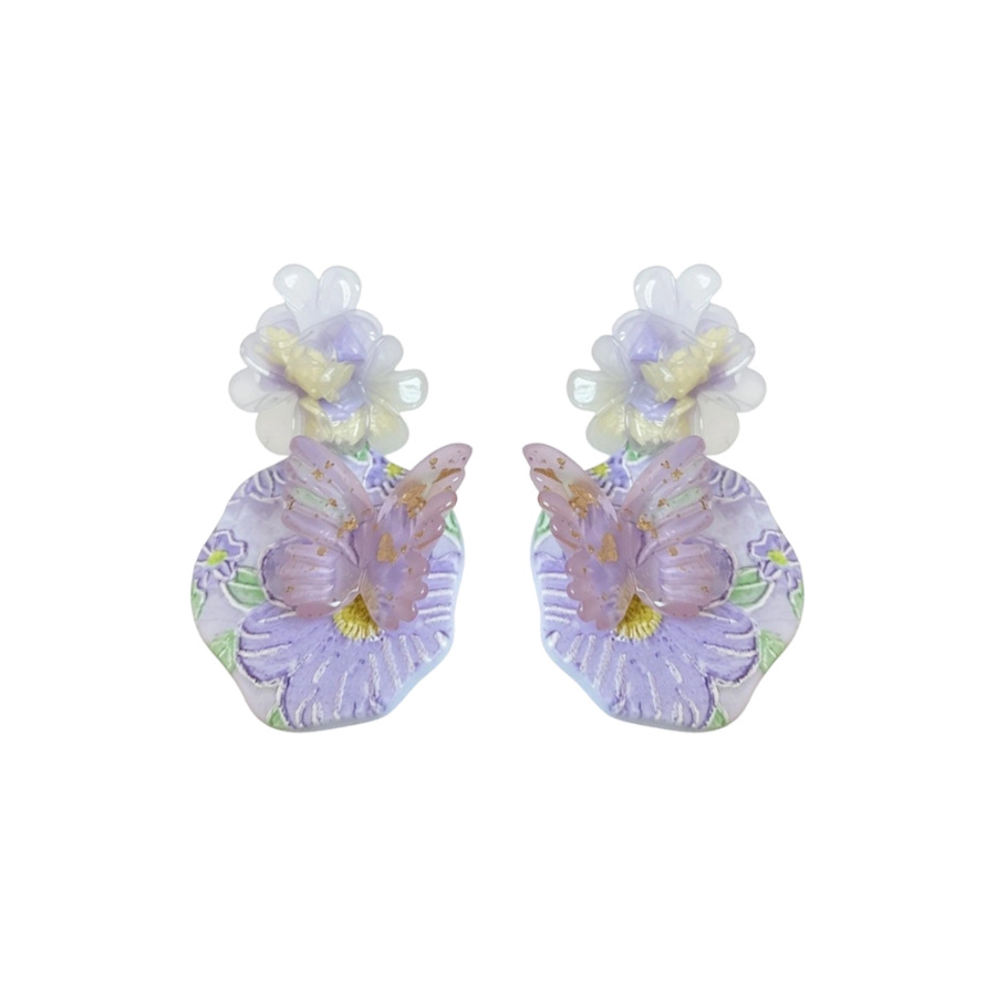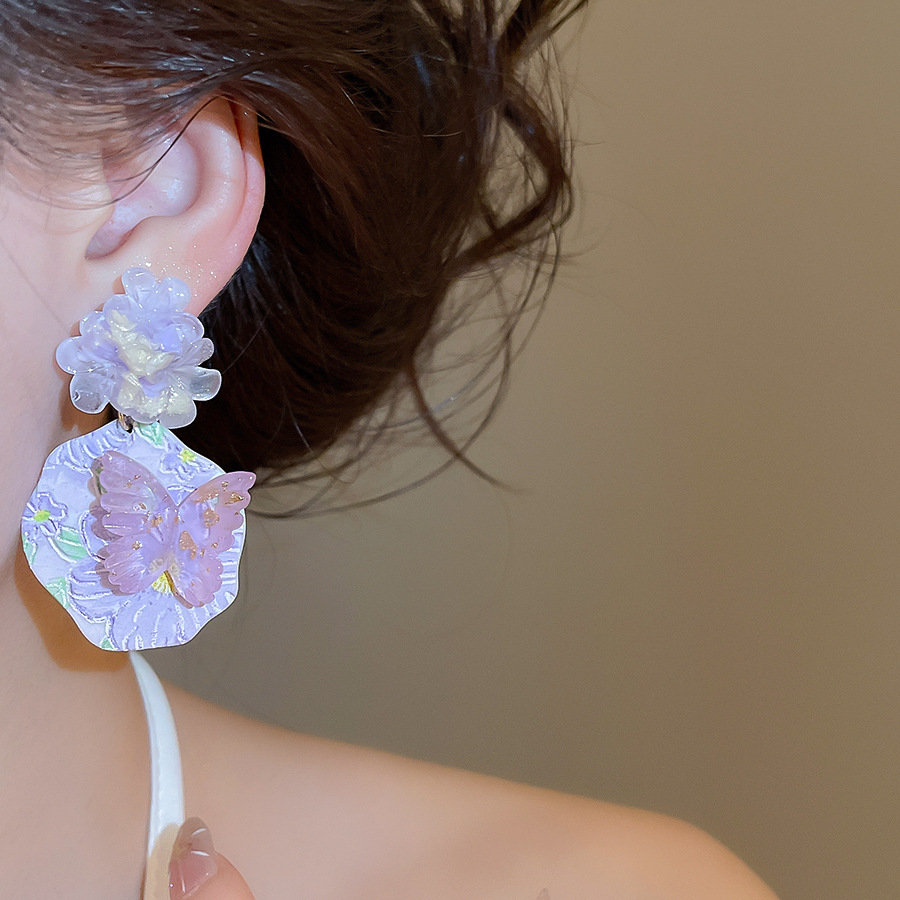 oil painting style ~ purple butterfly flower oil painting artistic earrings niche high sense earrings refined personalized earrings