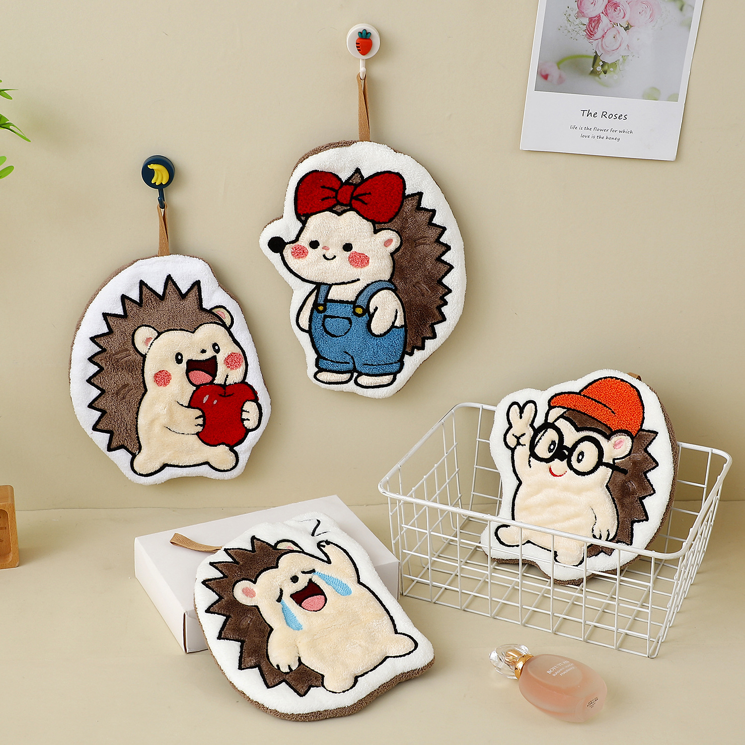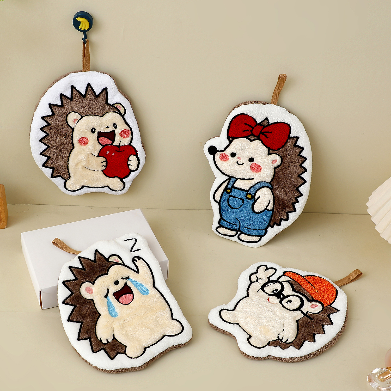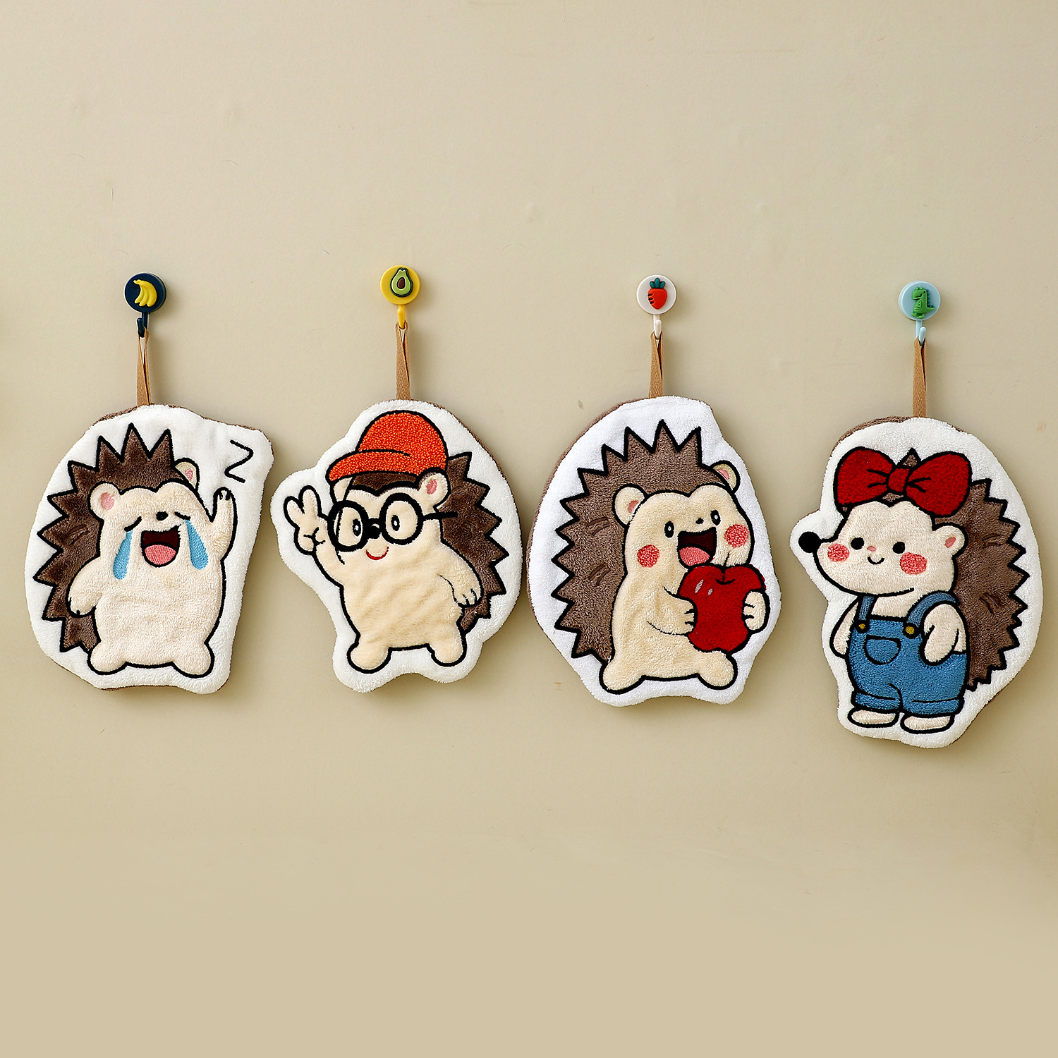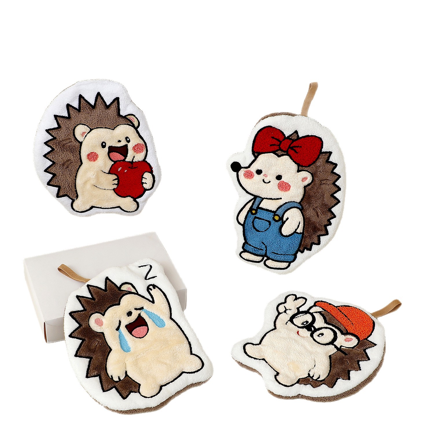 color: bowknot hedgehog, crying hedgehog, glasses hedgehog, apple hedgehog