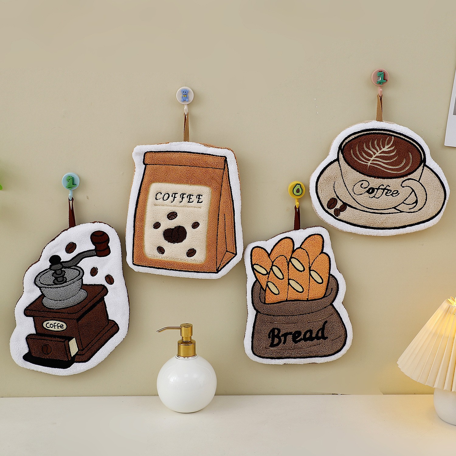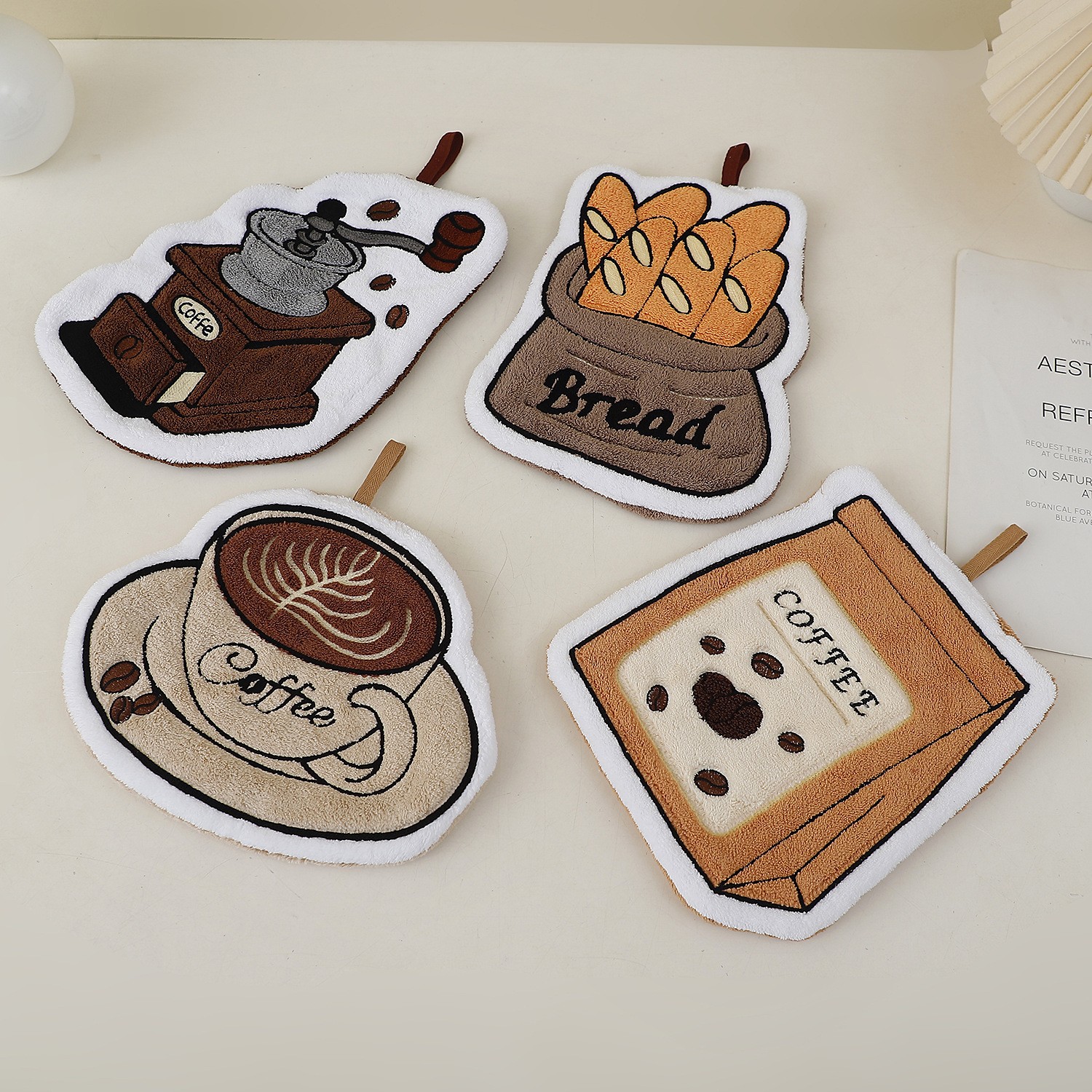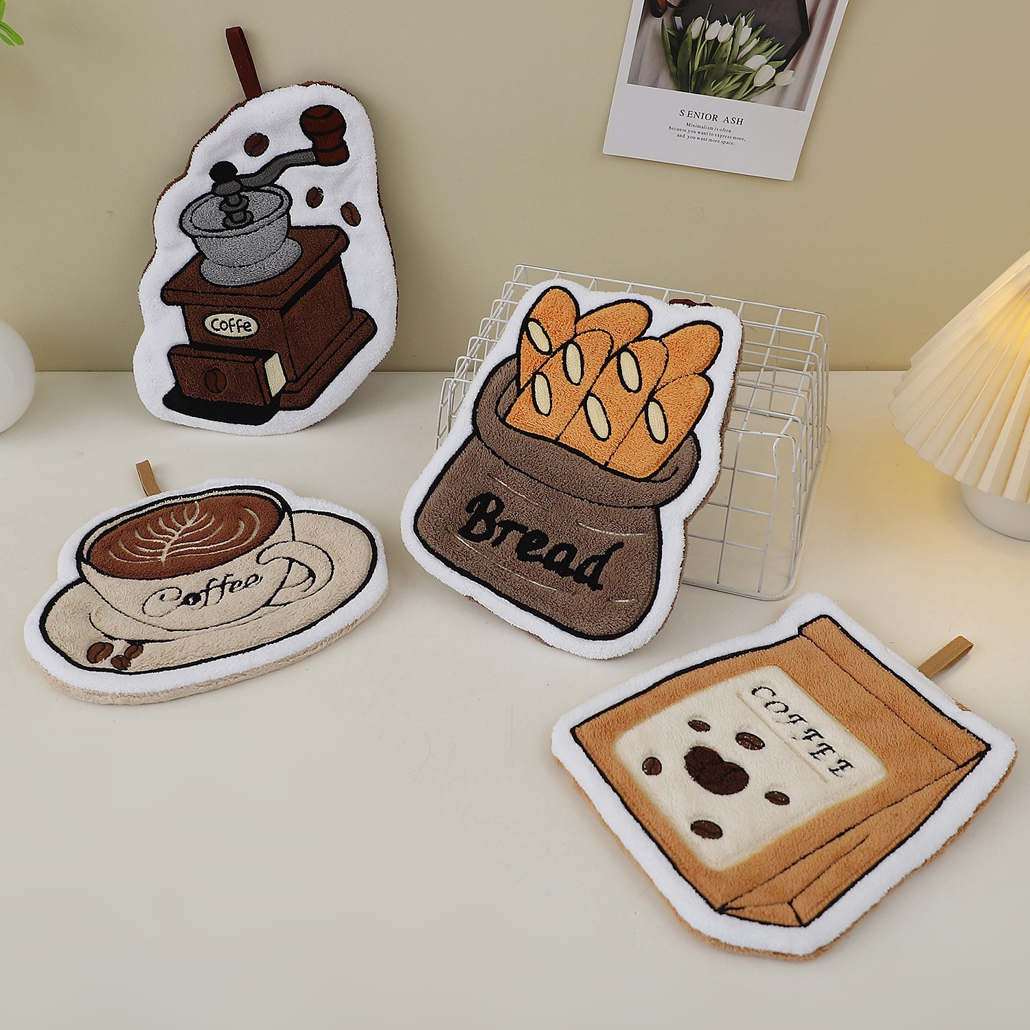 [grinding time] coffee grinder, [bread aroma] baguette