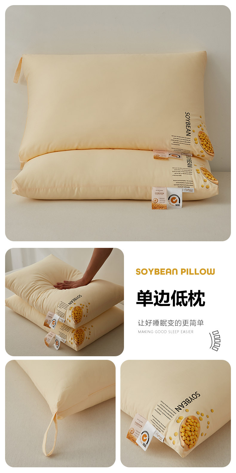 cotton soybean pillow-single side low loft pillow