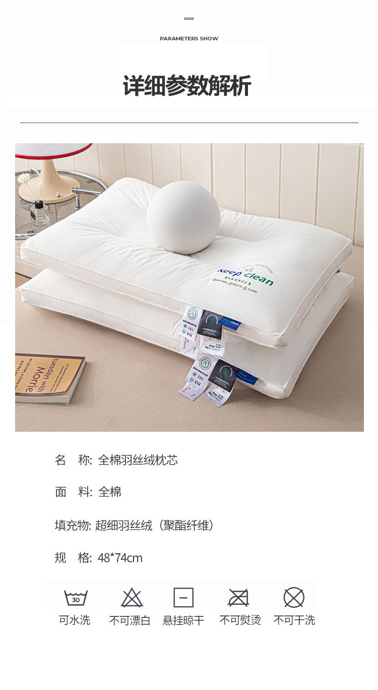 cotton white low loft pillow