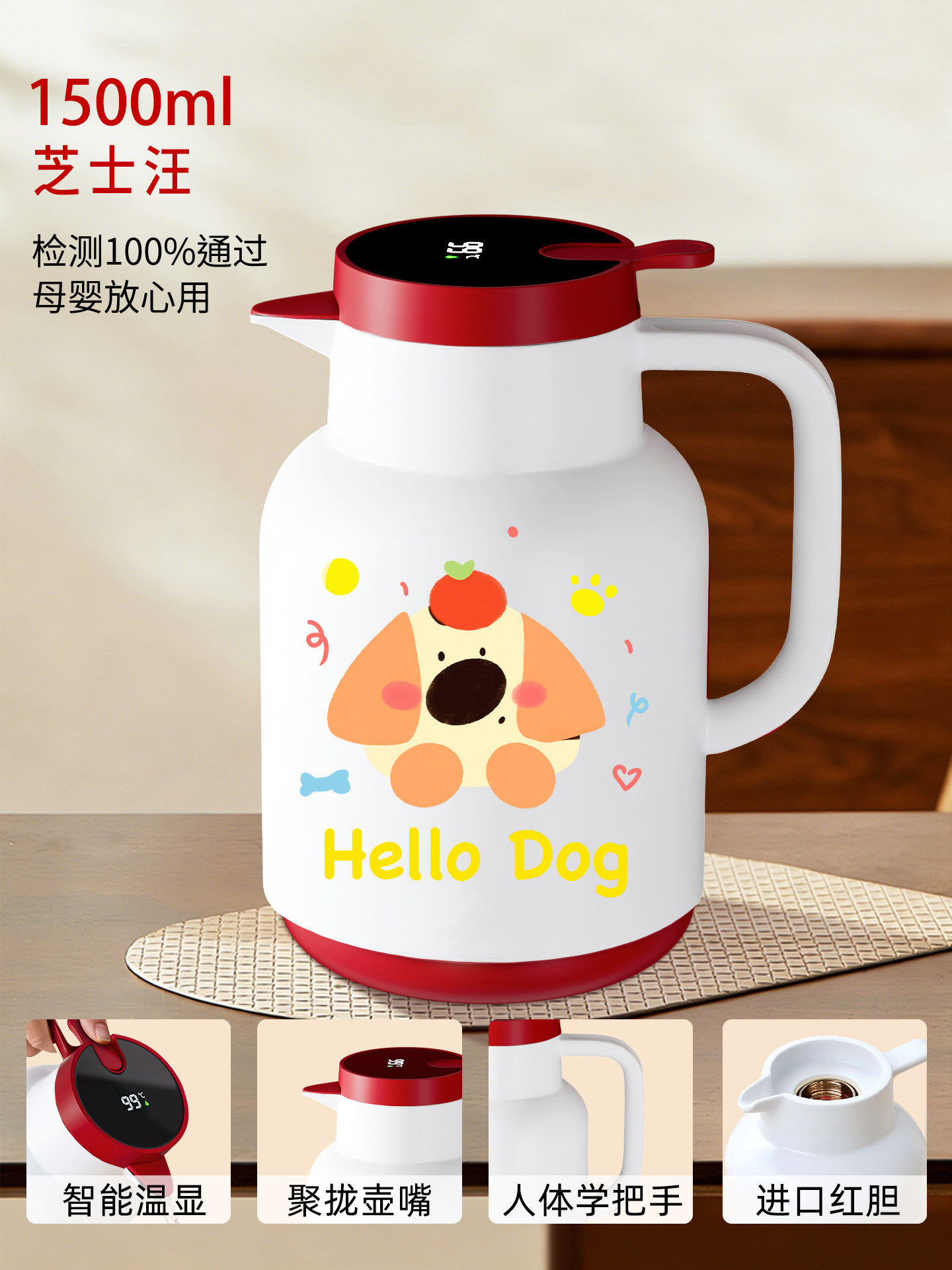 [upgraded antibacterial & thickened] cheese dog 1500ml [smart temperature display]