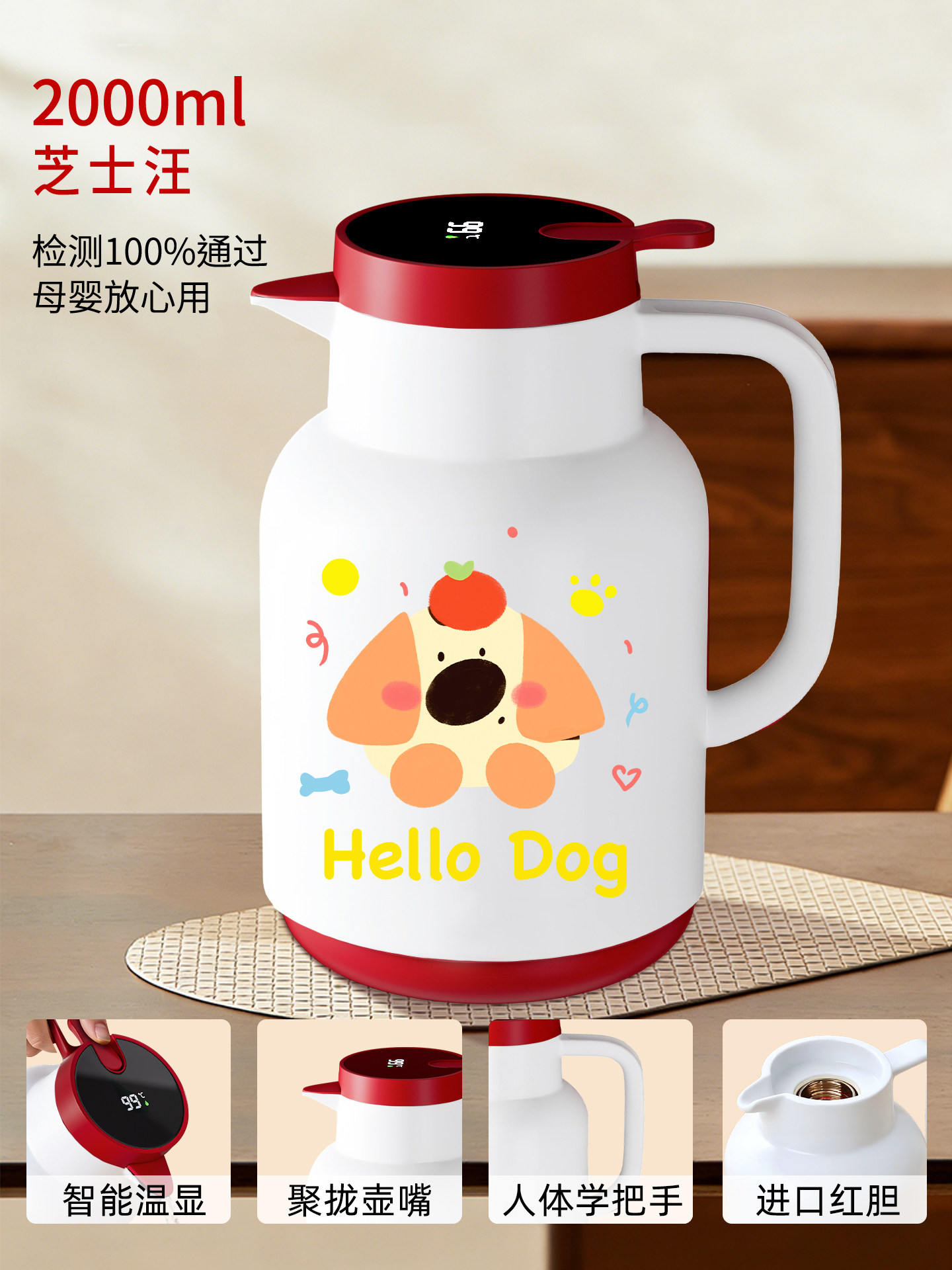 [upgraded antibacterial & thickened] cheese dog 2000ml [smart temperature display]