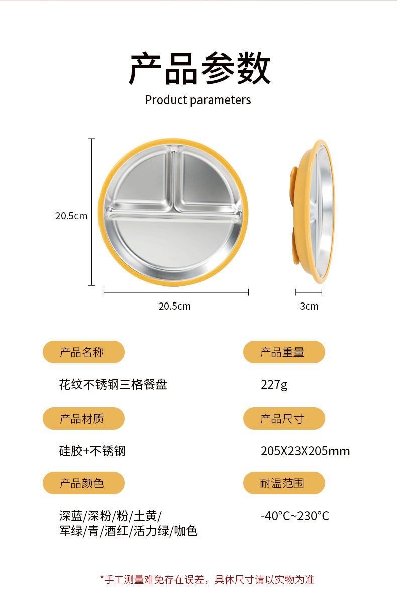 20cm soil-yellow silicone stainless steel plate