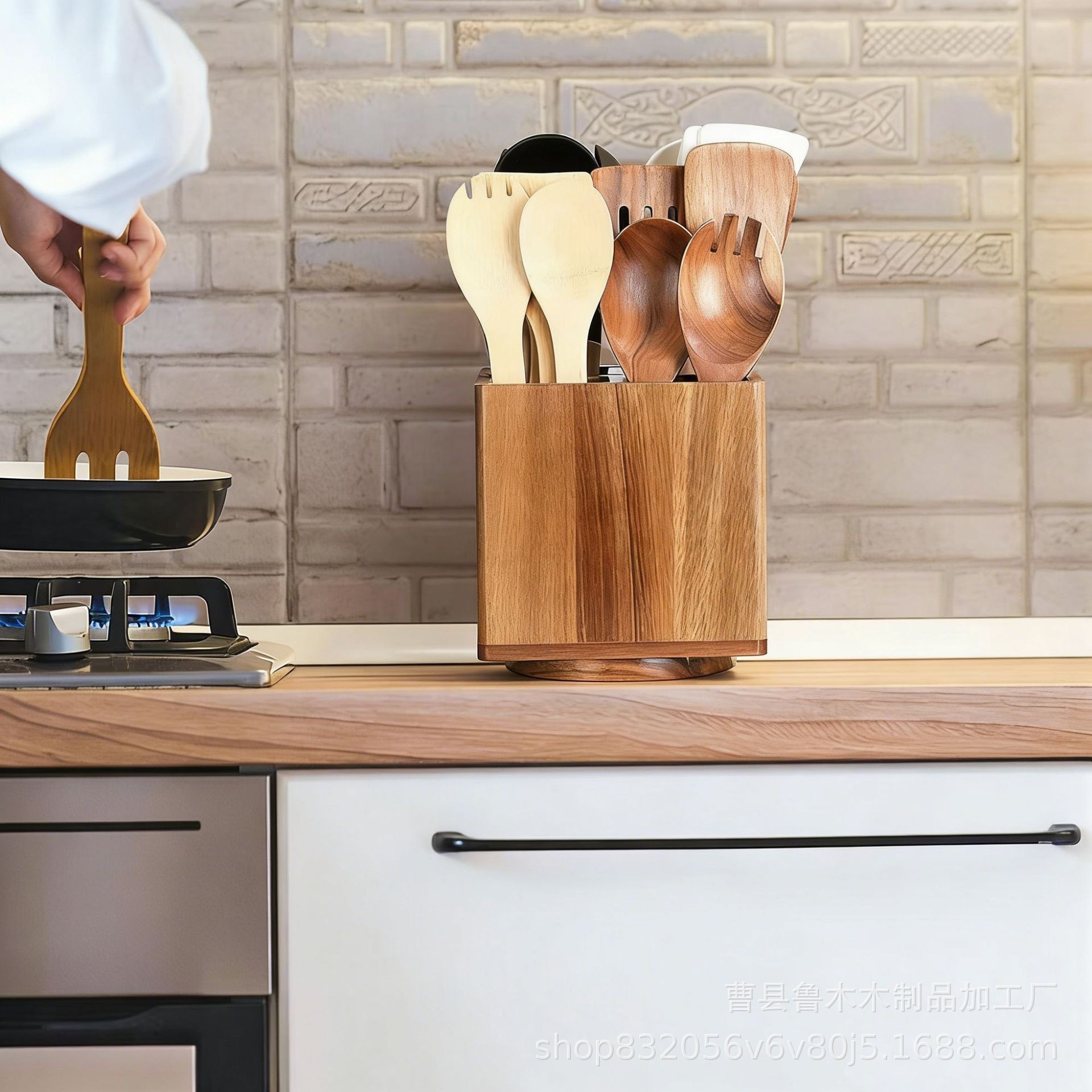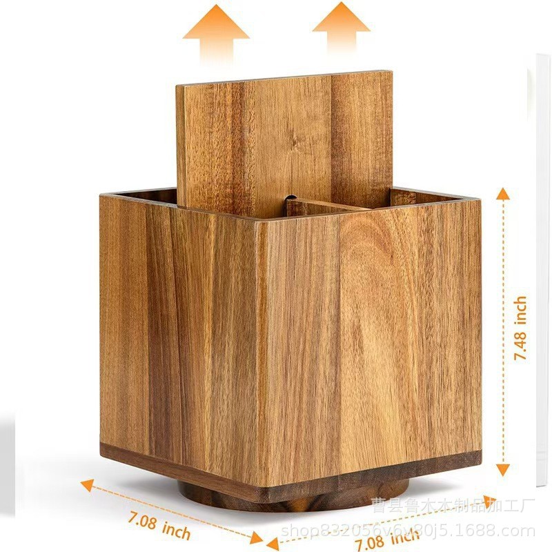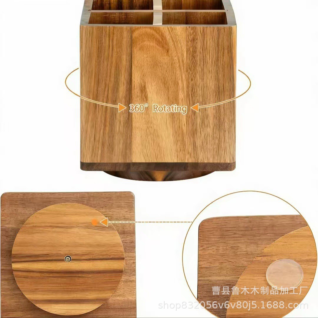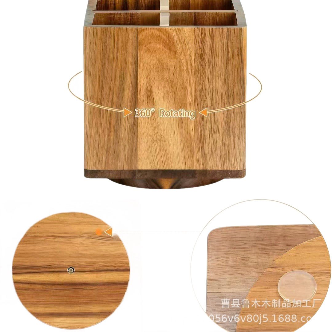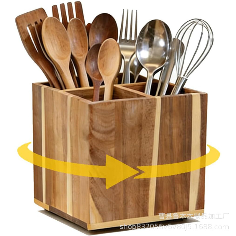 new solid wood rotating tableware storage box kitchen countertop compartment kitchen utensils basket wooden multifunctional storage box