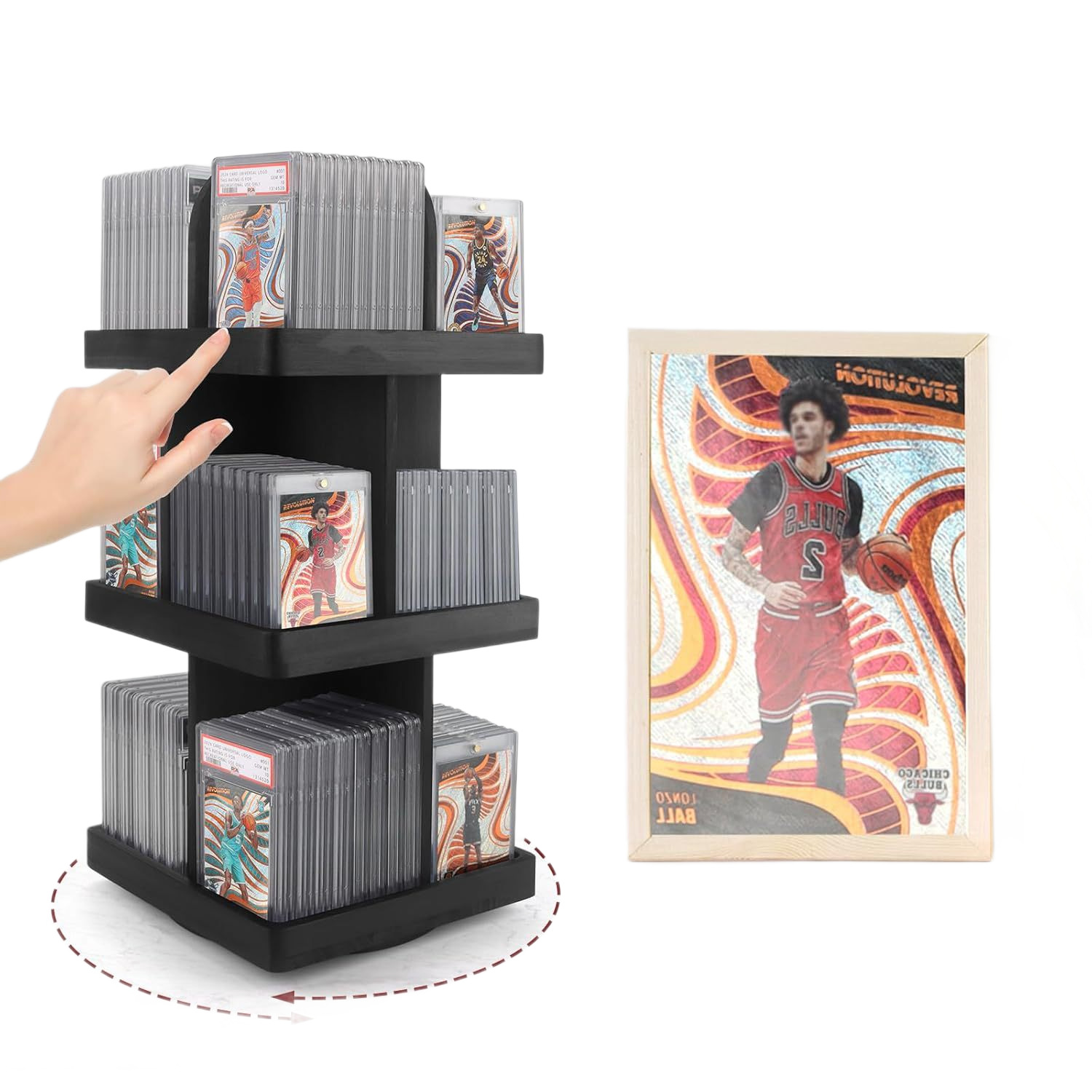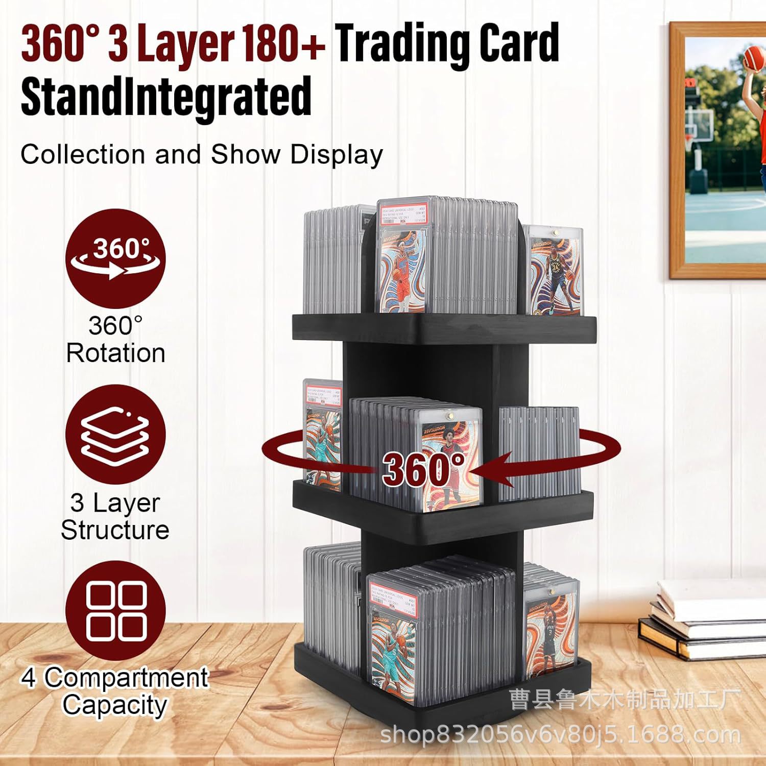 solid wood board game card storage rack rotating multi-layer display rack collection card organizing rack desktop card storage rack