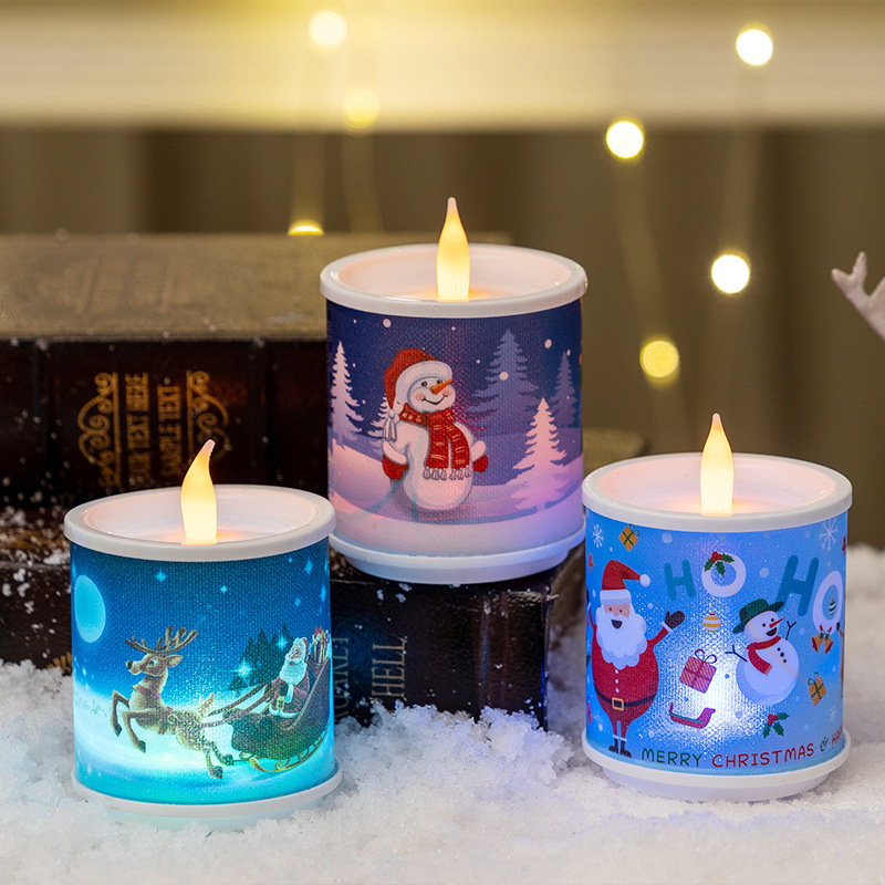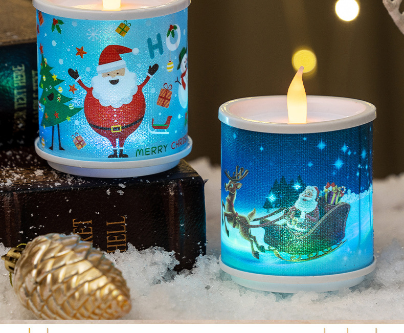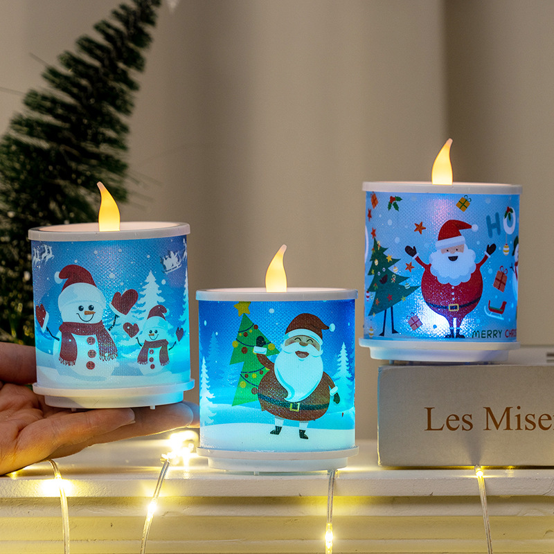 christmas new electronic candle christmas element printing candle light christmas decorations ornaments christmas gifts