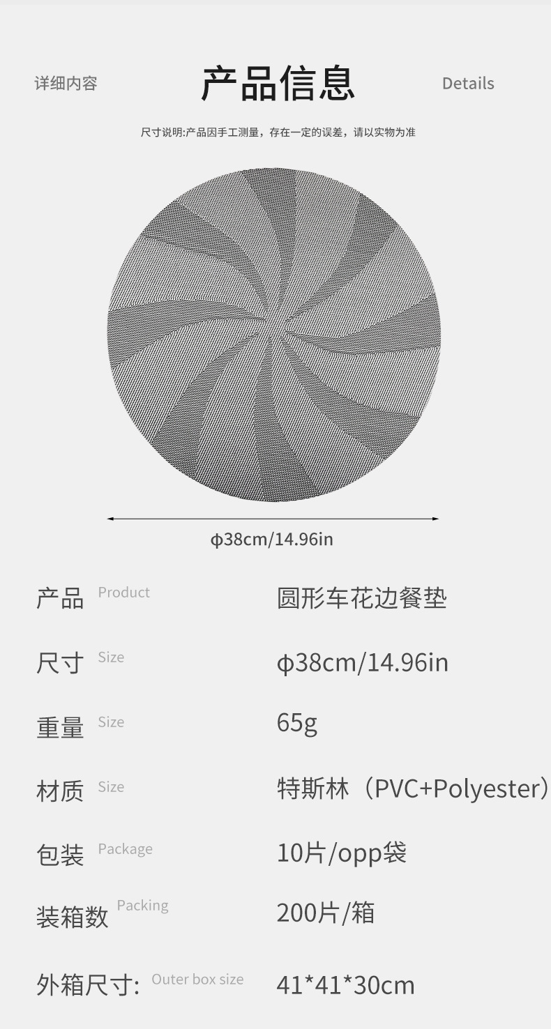 specifications: platinum 38cm round