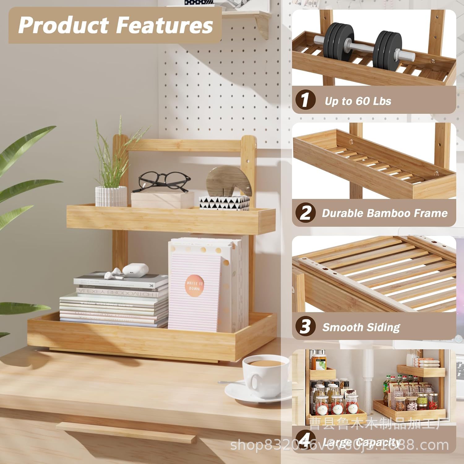 household bamboo kitchen storage rack desktop cosmetics bracket two-layer bathroom wash supplies storage rack