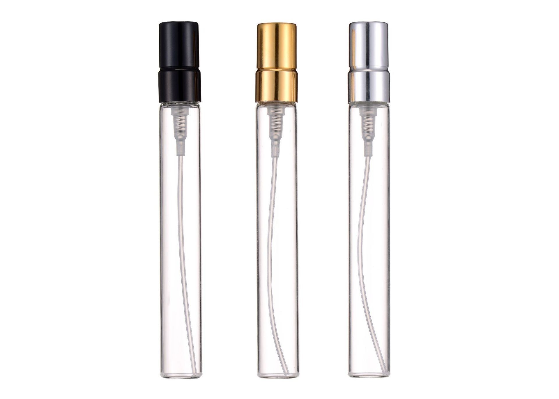 10ml (1512 pcs/carton); transparent bottle + electroplated aluminum black half cover spray
