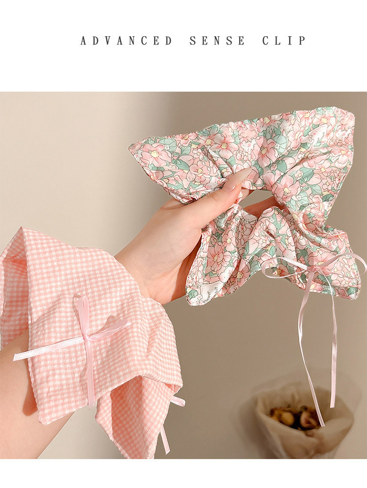 1# blue plaid square scarf hair ring 22cm