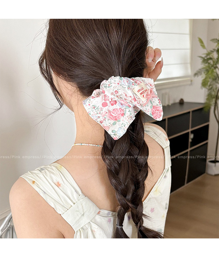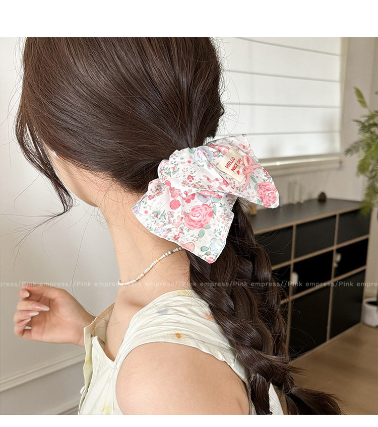 3# pink floral print square scarf hair tie approximately 21*22cm