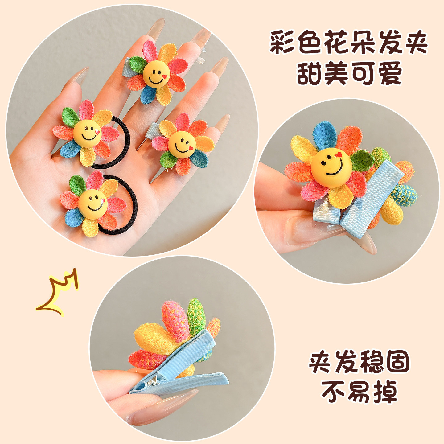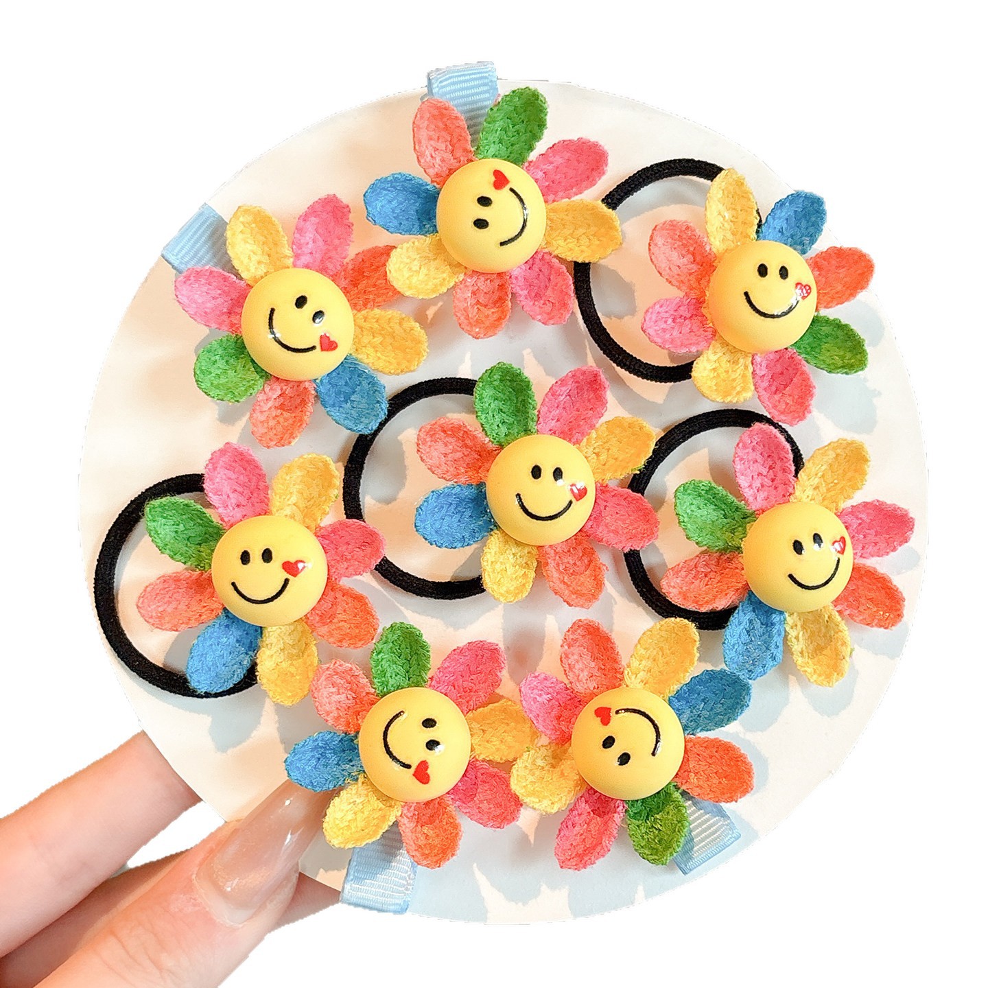 1# smiley face sunflower hair band (one-pair package)-bottom ring about 3.4cm sunflower about 4cm