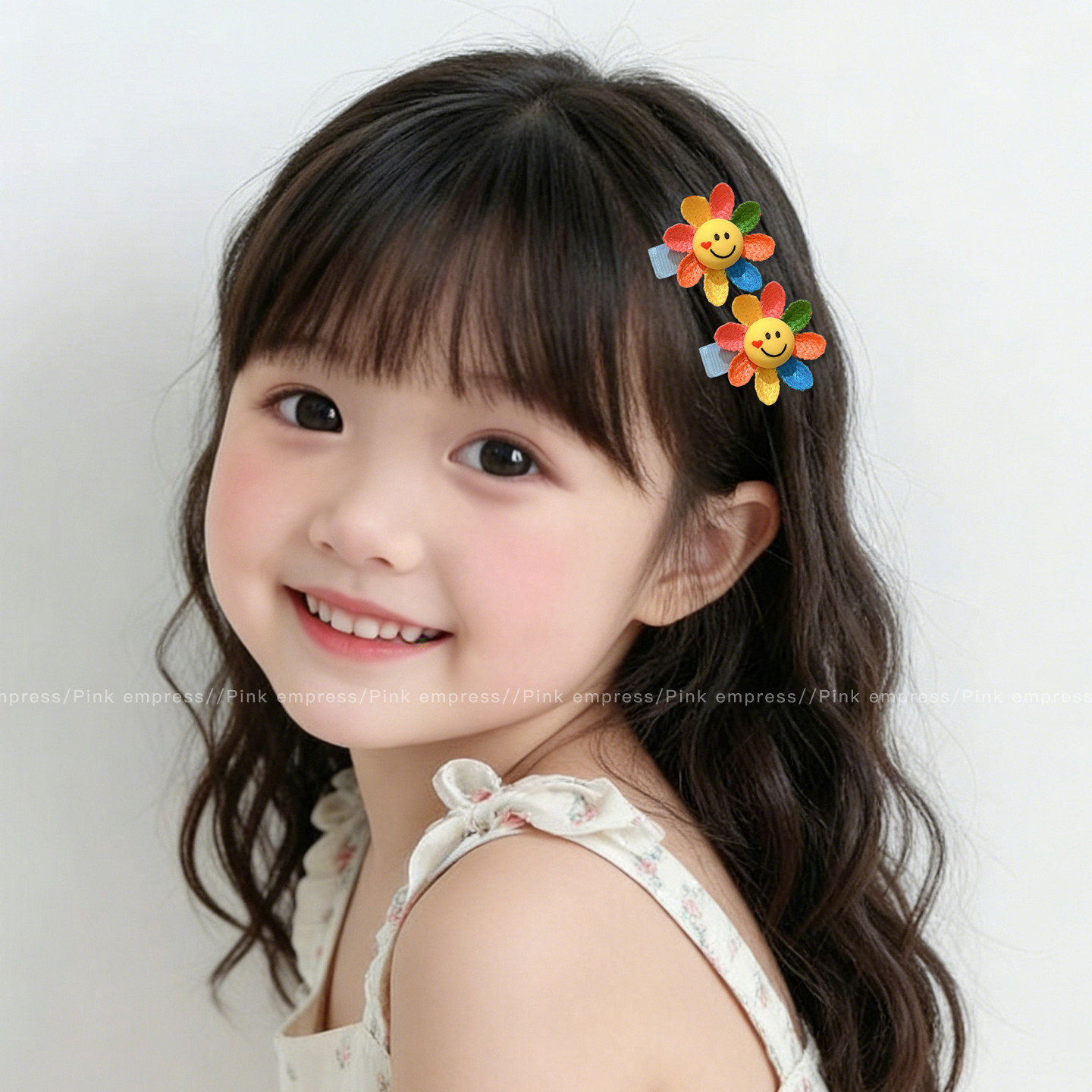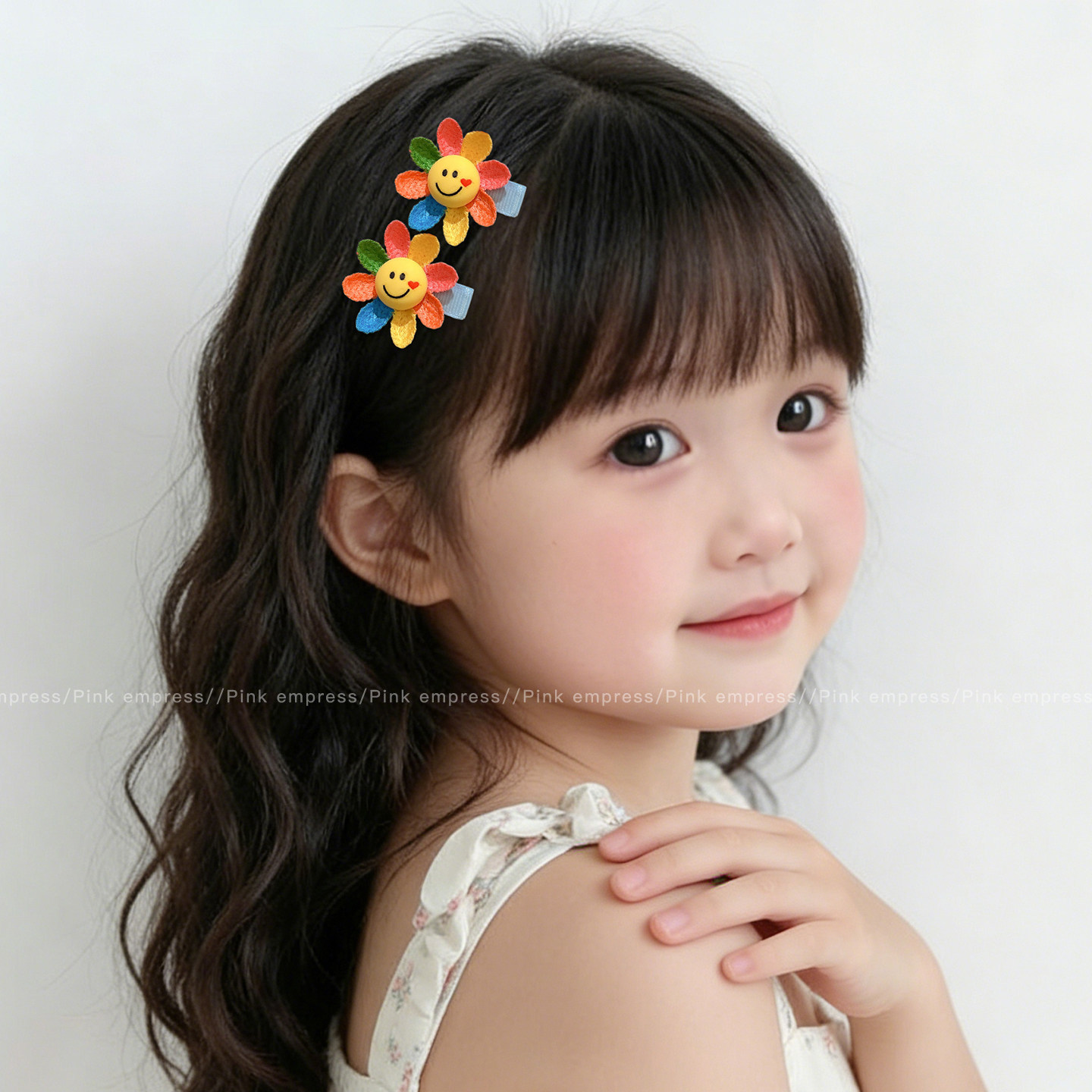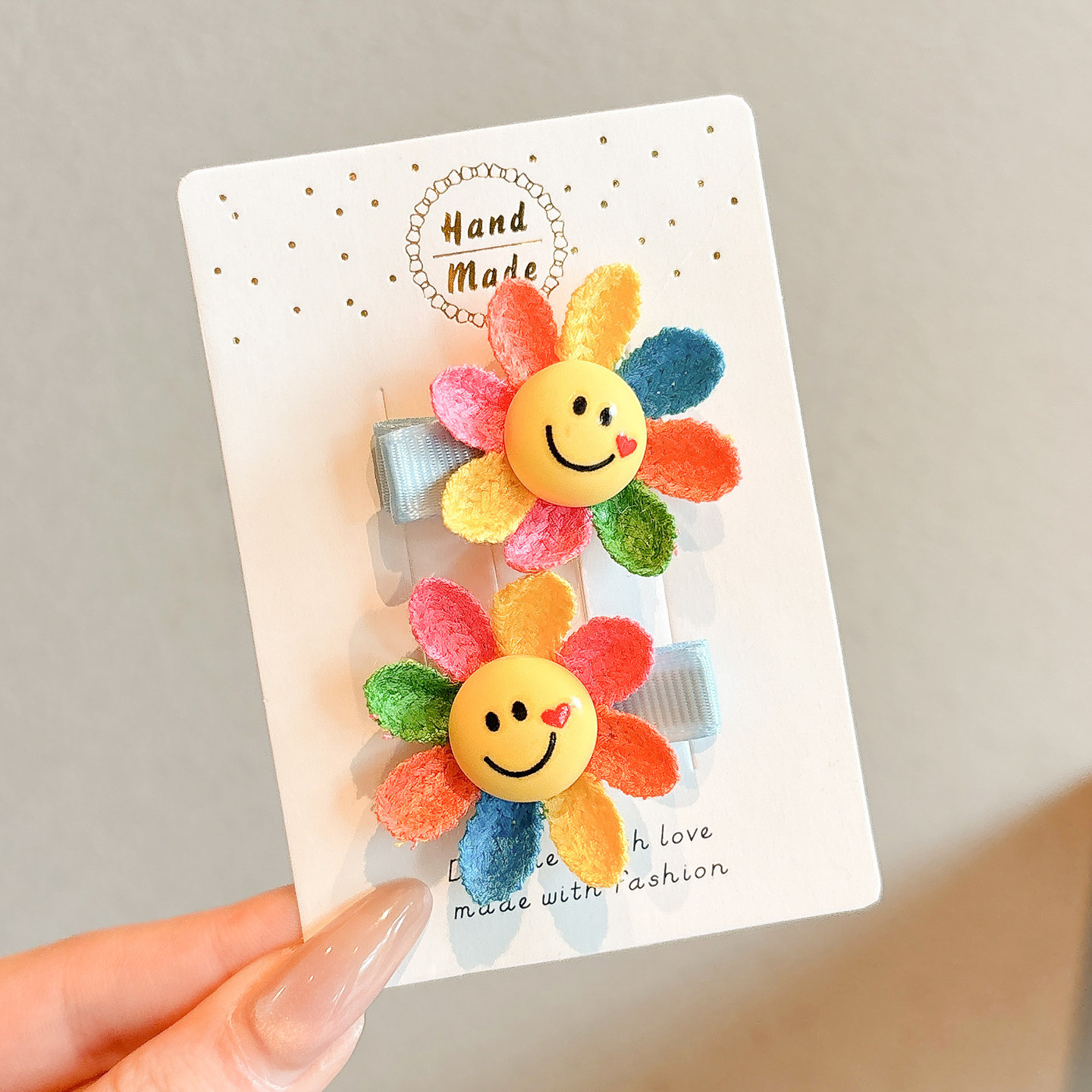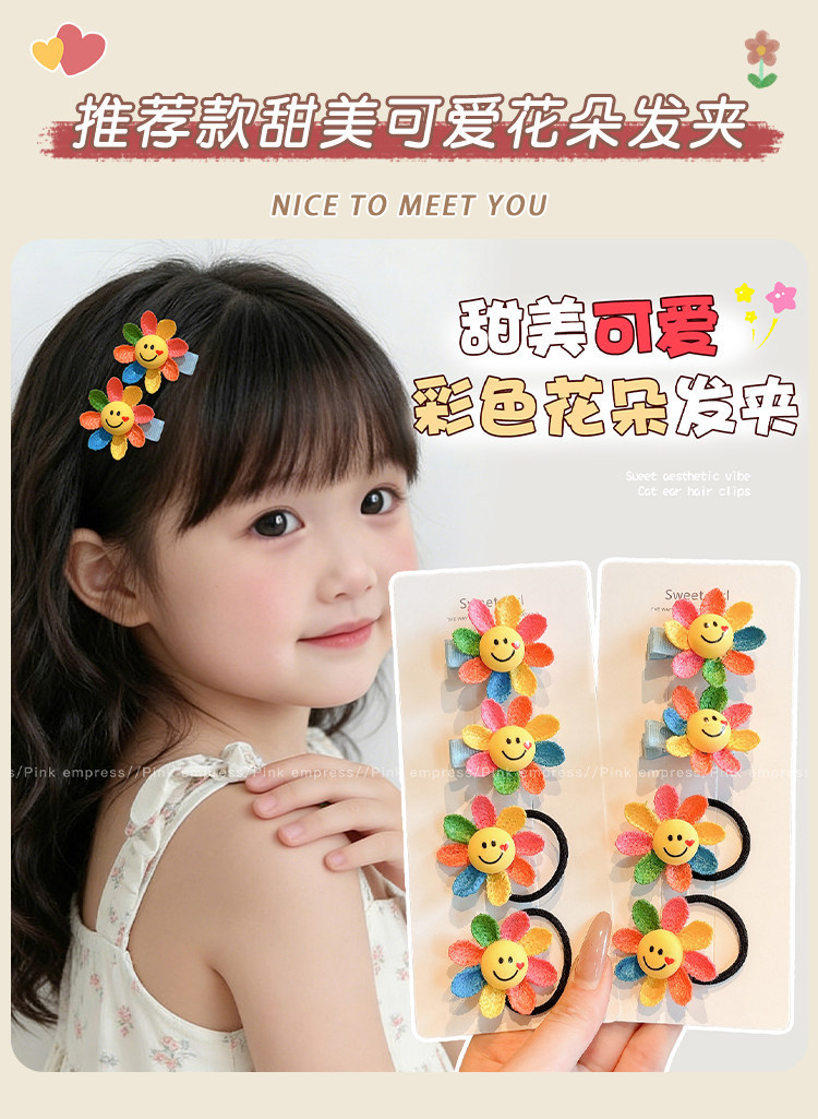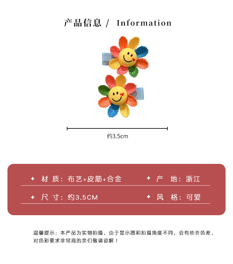 2# smiley face sunflower barrettes (one-pair package)-bottom clip about 3.5cm sunflower about 4cm