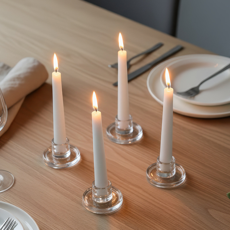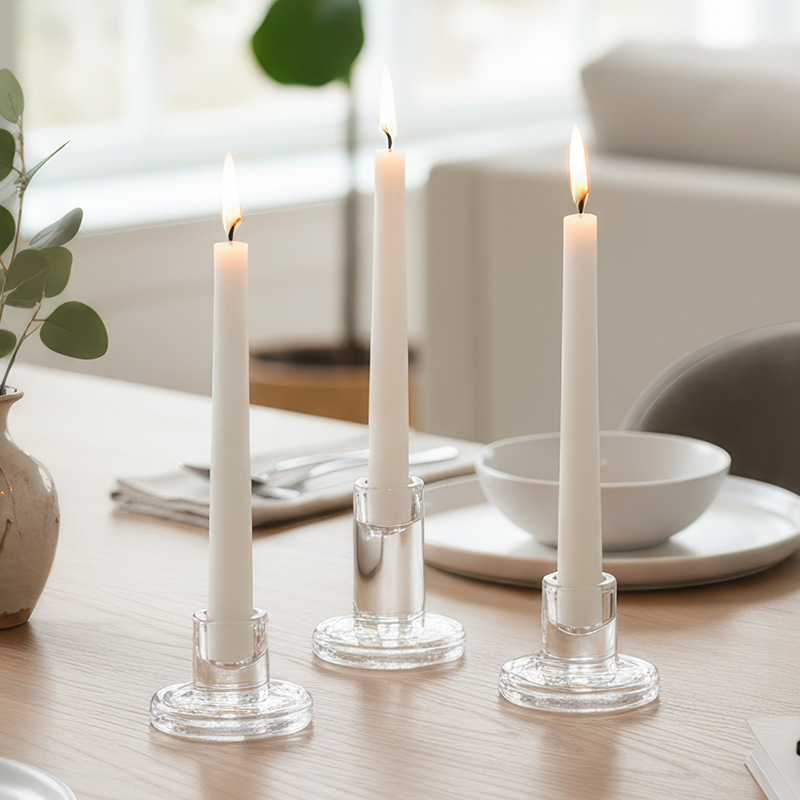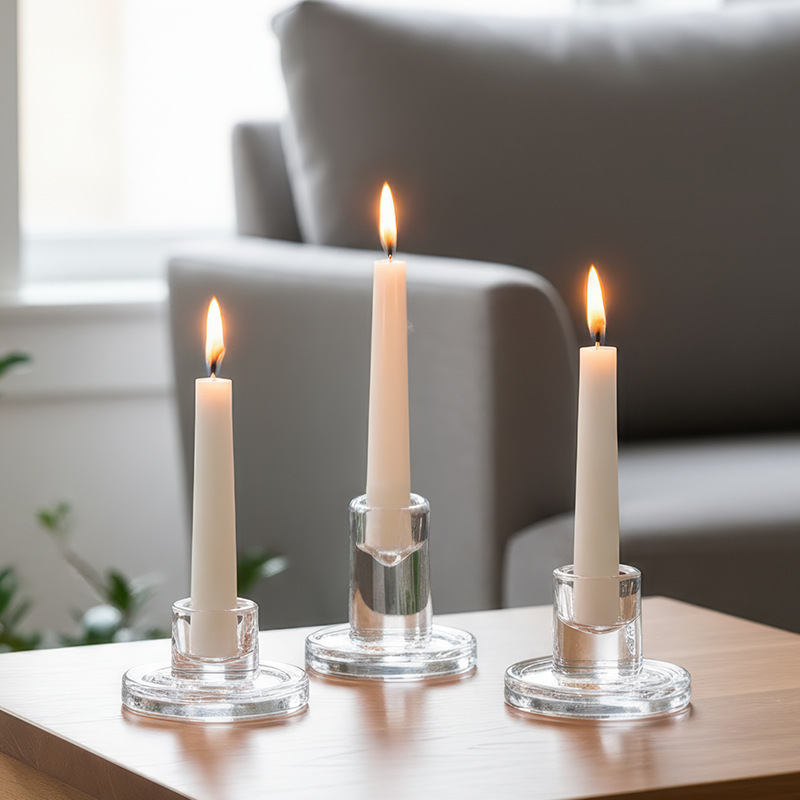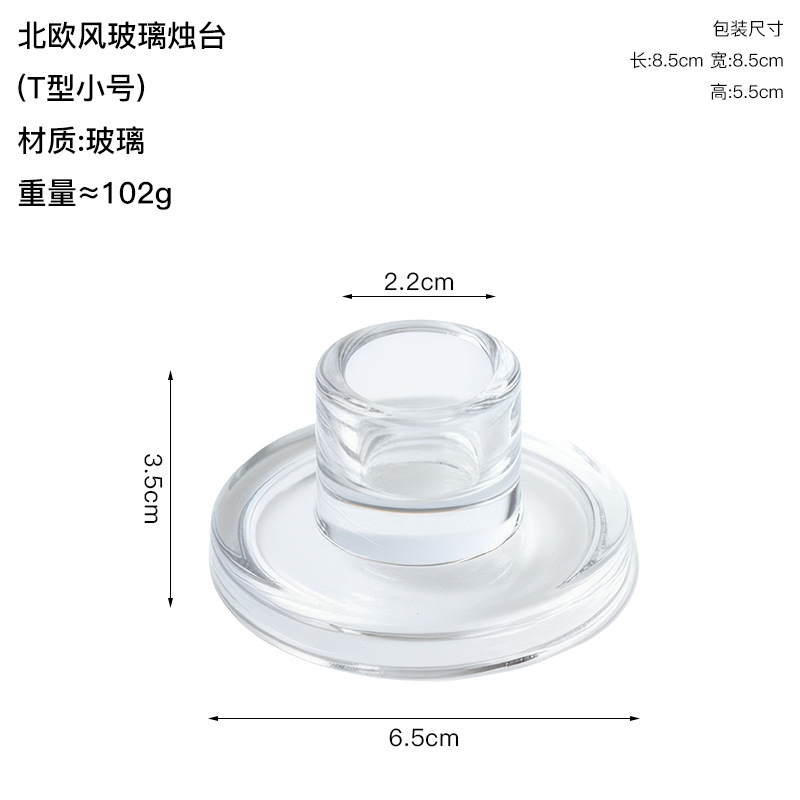 glass t-shaped candle holder-medium size (set of three, pearl cotton packaging)
