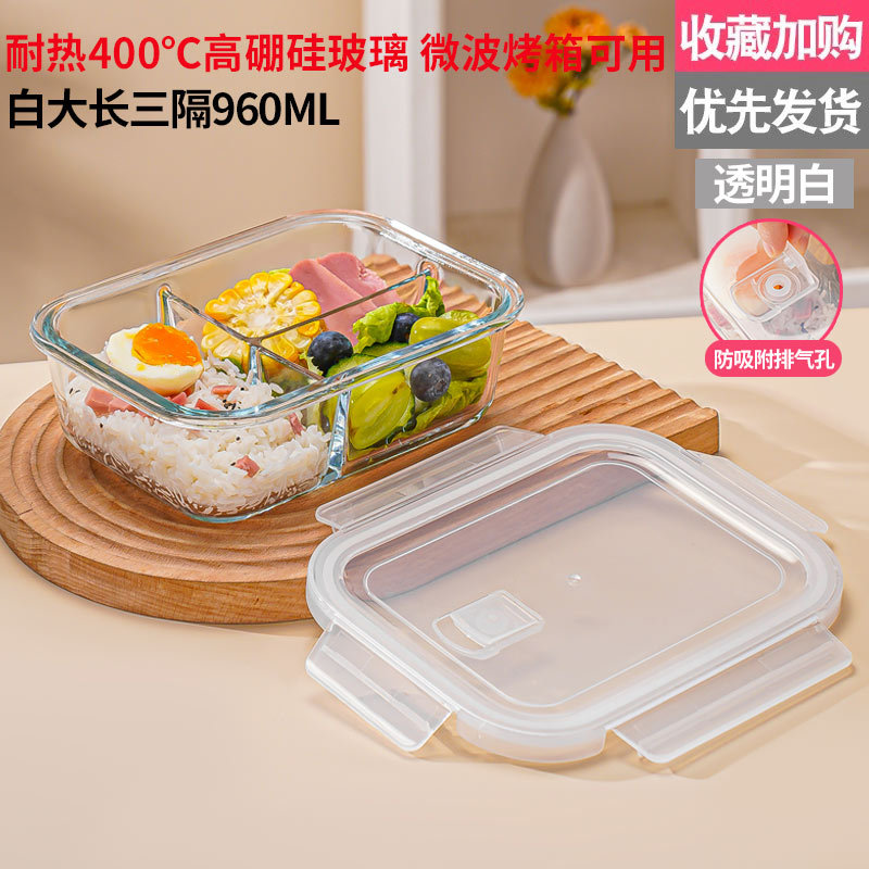 transparent white large three-compartment container