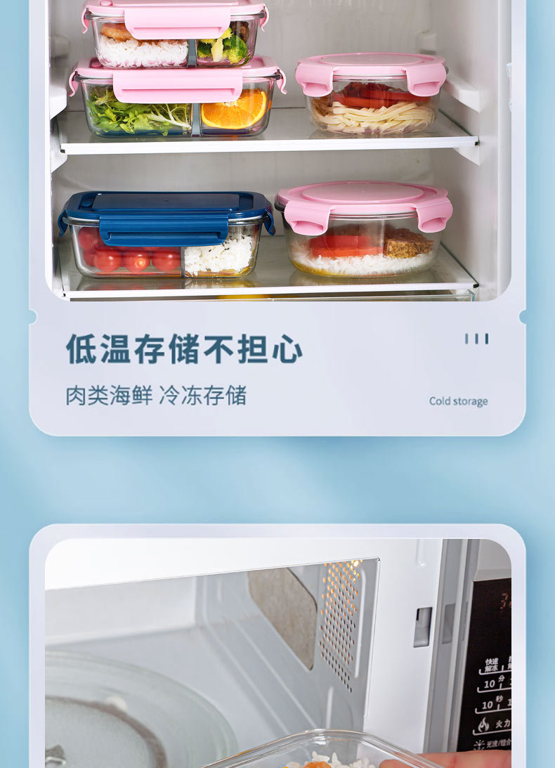 transparent blue large three-compartment container