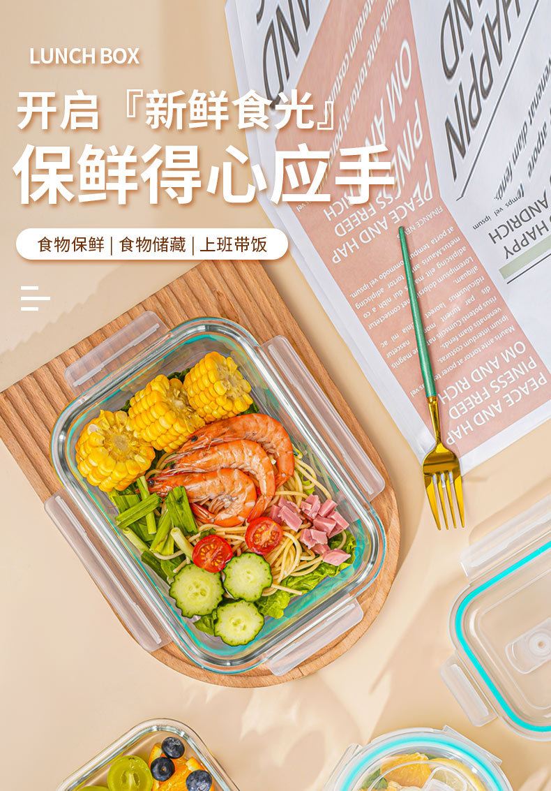 large, long container with cutlery, matcha green